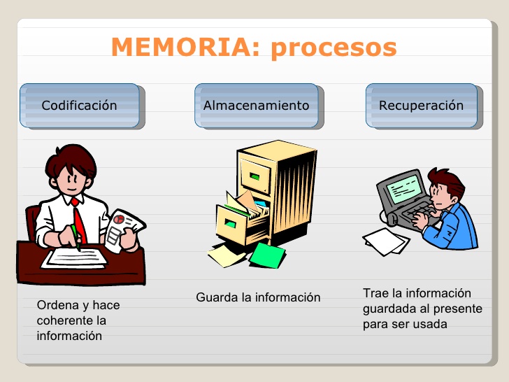 El proceso de memorización pasa por tres fases o momentos: registrar, retener y recuperar.