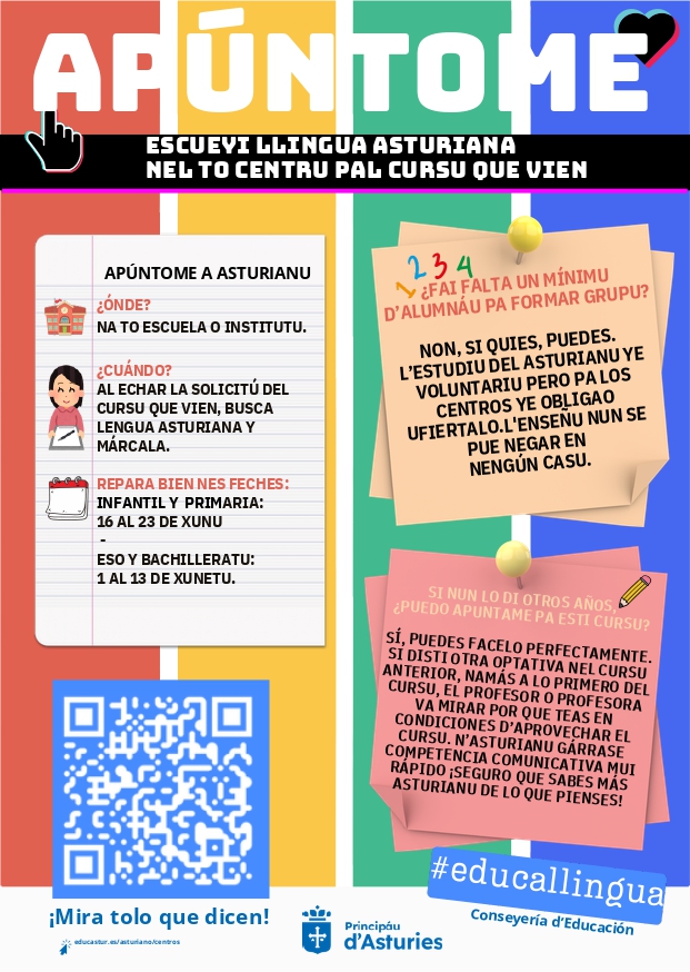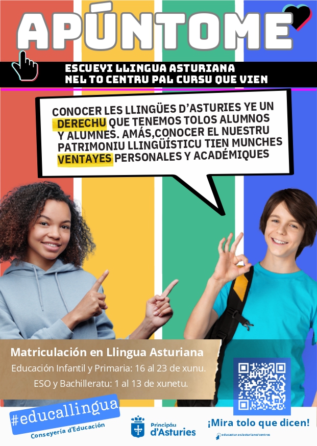 La Consejería de Educación ha iniciado una nueva campaña para incentivar la matriculación para el próximo curso escolar del alumnado de Primaria, Secundaria y Bachillerato en Lengua Asturiana para los más jóvenes de la casa.