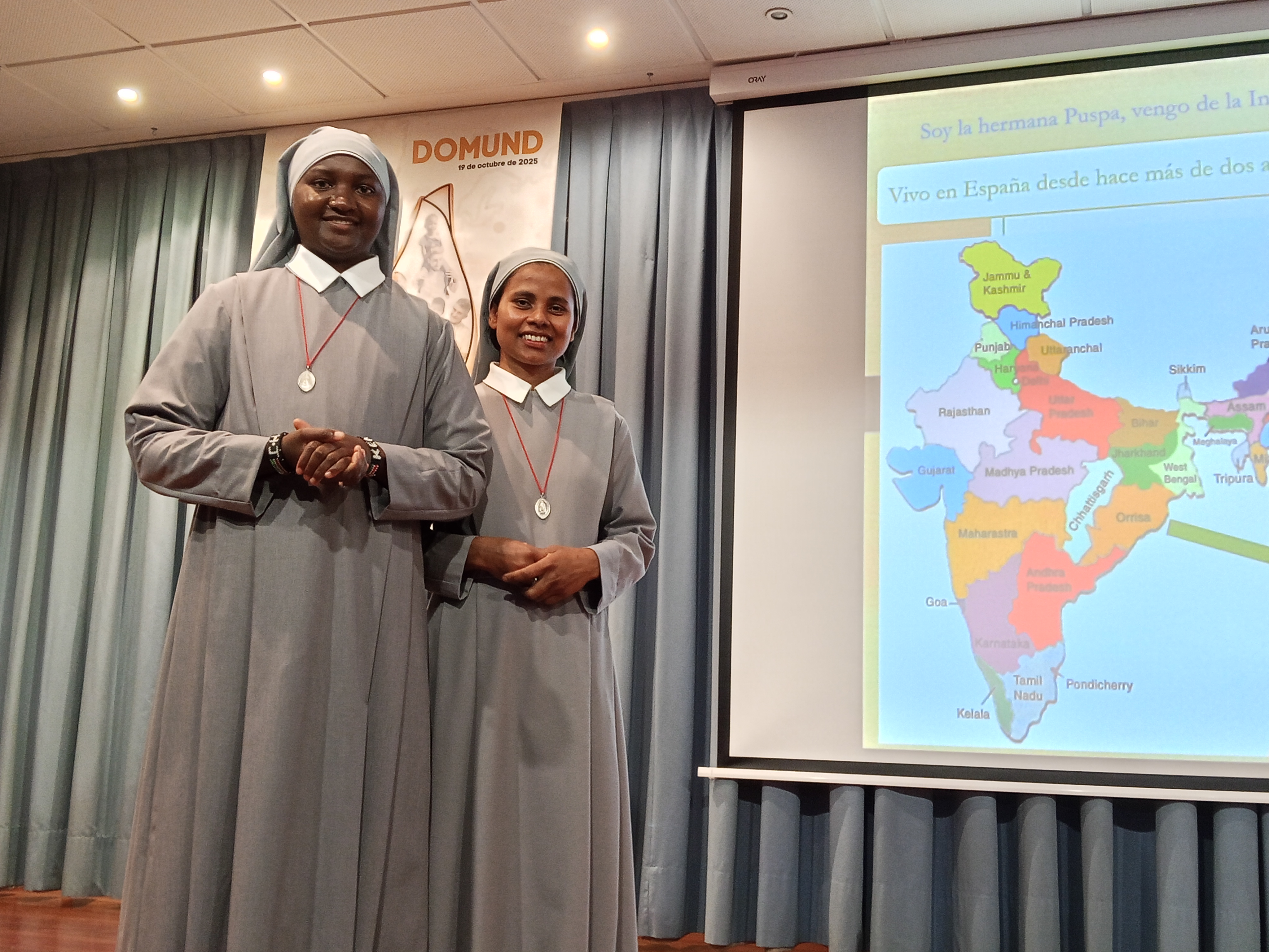 Por su parte, la hermana Puspa, hindú convertida al catolicismo a los ocho años, relató su experiencia con un grupo de mujeres en la India: “Con el dinero de las misiones pudimos comprarles una máquina de coser y, de esa forma, consiguen ganarse la vida por su cuenta, manteniendo a sus familias”.