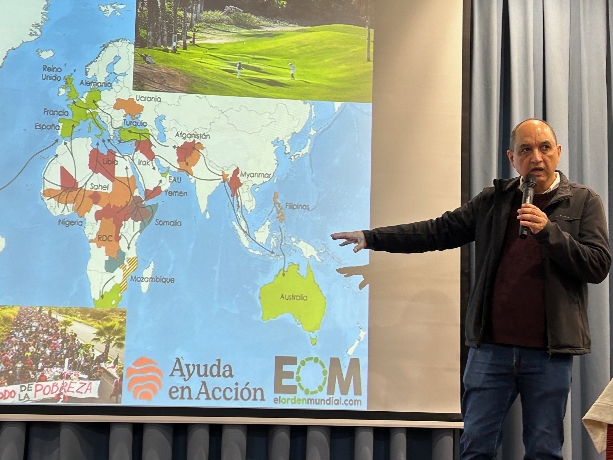 Después, nos ilustró con un vídeo en el que se analizaba la genética de diferentes personas del mundo, para hacernos ver que “somos mucho más hermanos de lo que parece”. Tras el vídeo, explicó que en realidad solo el 3% de la población mundial es migrante internacional, pues en esta denominación solo están las personas que nacieron en un lugar diferente al que viven; no son migrantes los hijos o nietos de migrantes porque ya nacieron en el mismo lugar donde viven.