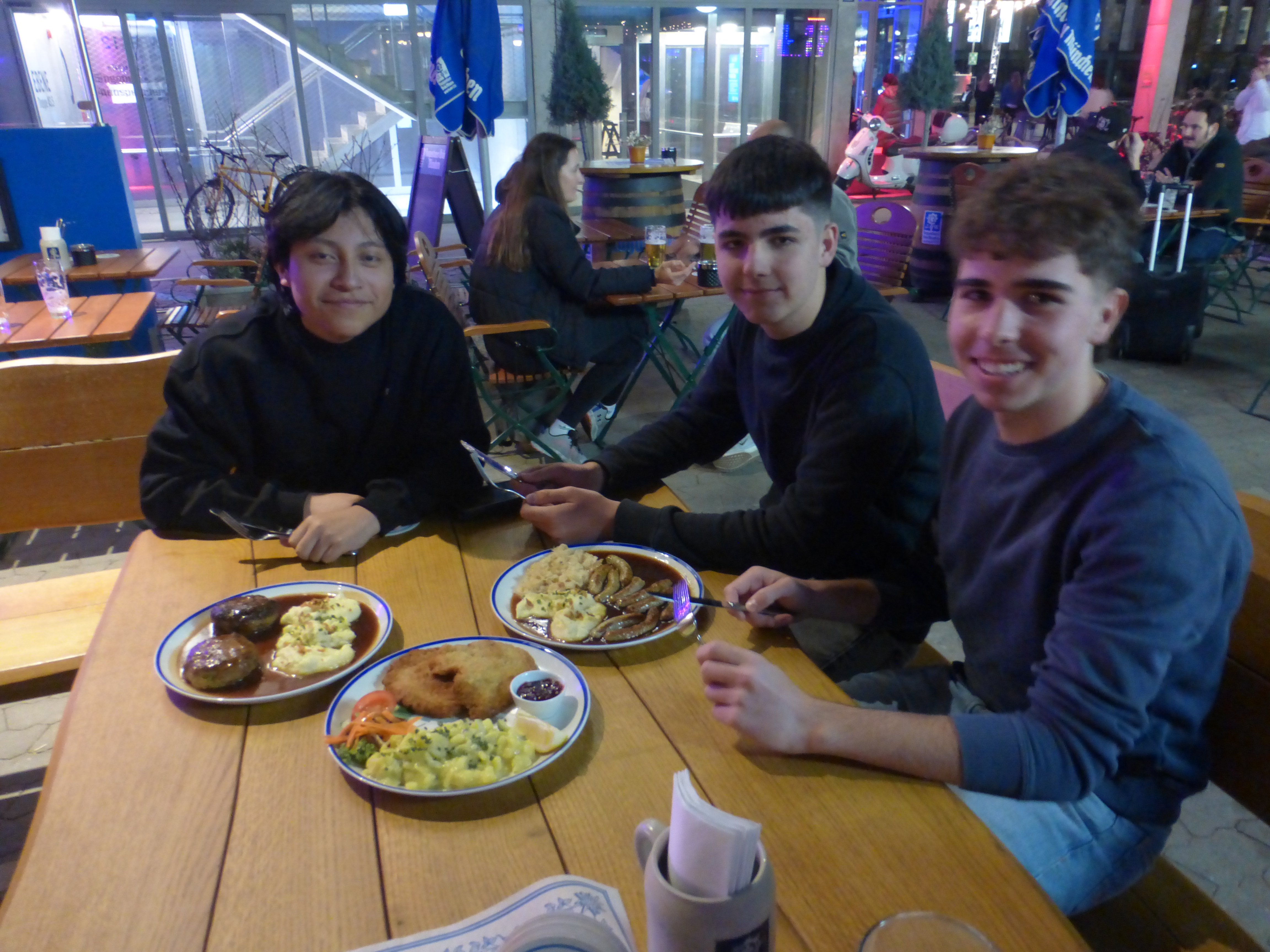 Después de comer por el centro y una reparadora siesta, exploraron la vida cultural, de ocio y gastronómica de la zona cercana a nuestro alojamiento, como bares y terrazas construidos con contenedores industriales y conciertos de grupos locales. Algunos alumnos se atrevieron a comer o cenar platos típicos bávaros.