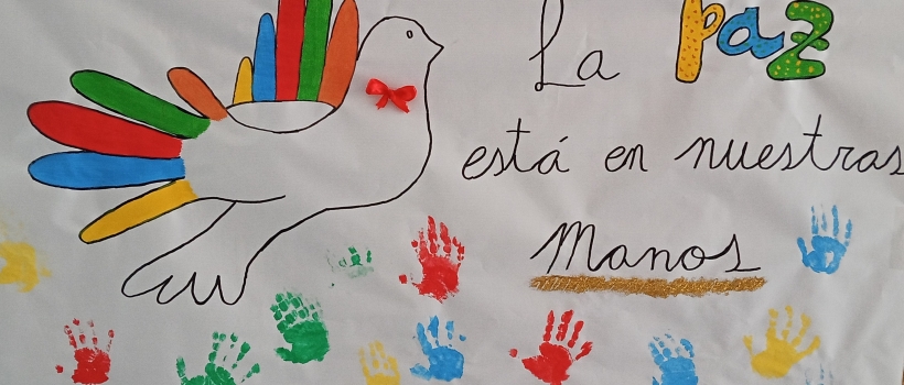 En la Guardería Nazaret también se celebra el Día de la Paz. Bajo el lema "La Paz está en nuestras manos", los niños y niñas han realizado un mural con sus manos y una manualidad de algodón con una palomita blanca para llevar la paz hasta sus casas.