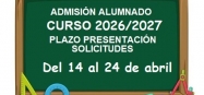 El plazo de admisión de nuevo alumnado para el curso 2026- 2027 estará abierto del 14 al 24 de abril de 2026. Si queréis conocernos y visitar nuestras instalaciones, podéis venir al centro mediante una visita personalizada. Para concertarla, podéis escribir a secretaria@colegionazaret.es o llamar al 985231900. ¡Estaremos encantados de recibiros!