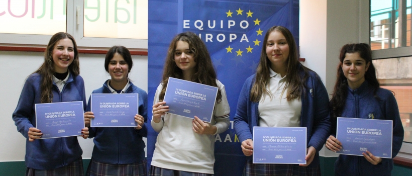 El pasado viernes, las alumnas de 4º de ESO, Amaya Viejo, Irene Viñuela, Lucía García, Carmen Ibáñez y Larissa Zapico, participaron en la IV fase regional de las Olimpiadas sobre la Unión Europea. Para su inauguración , se contó con la presencia del consejero de Hacienda, Justicia y Fondos Europeos, Guillermo Peláez, los eurodiputados asturianos Jonás Fernández y Susana Solís, y la Consejera Permanente del Consejo de Estado y catedrática de Derecho Internacional, Paz Andrés Saénz de Santa María. Esta última hizo un repaso de los 40 años de la entrada de España en la Unión Europa, asunto que luego sería el tema central del ensayo que debían hacer los participantes en la Olimpiada.