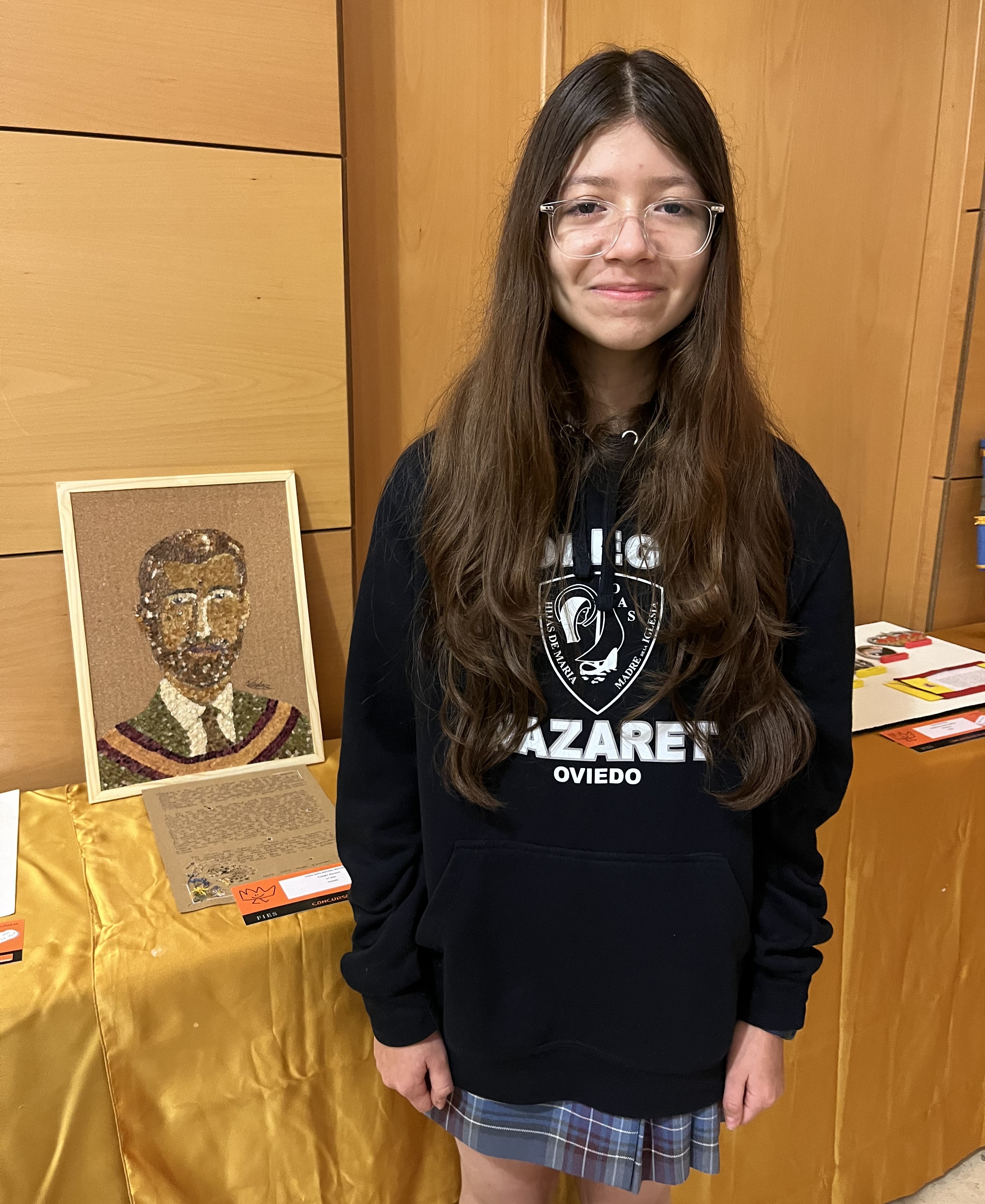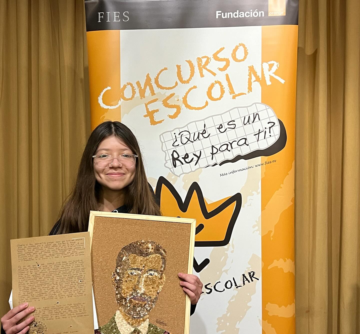 Nuestra alumna Dayla Sofía Méndez Bermúdez, de 1º de ESO, ha resultado ganadora en la 43ª edición del concurso ¿Qué es un rey para ti?, promovido por la Fundación Institucional Española (FIES) y la Fundación Orange. Dayla representará al Principado de Asturias en la audiencia privada que el monarca ofrecerá próximamente a los ganadores, donde tendrá la oportunidad de conocer a don Felipe y mostrarle el trabajo con el que ha ganado el concurso en nuestra Comunidad: un original retrato del rey en forma de manualidad, para el cual se sirve de hojas recogidas por ella misma en las distintas sendas verdes de Asturias.