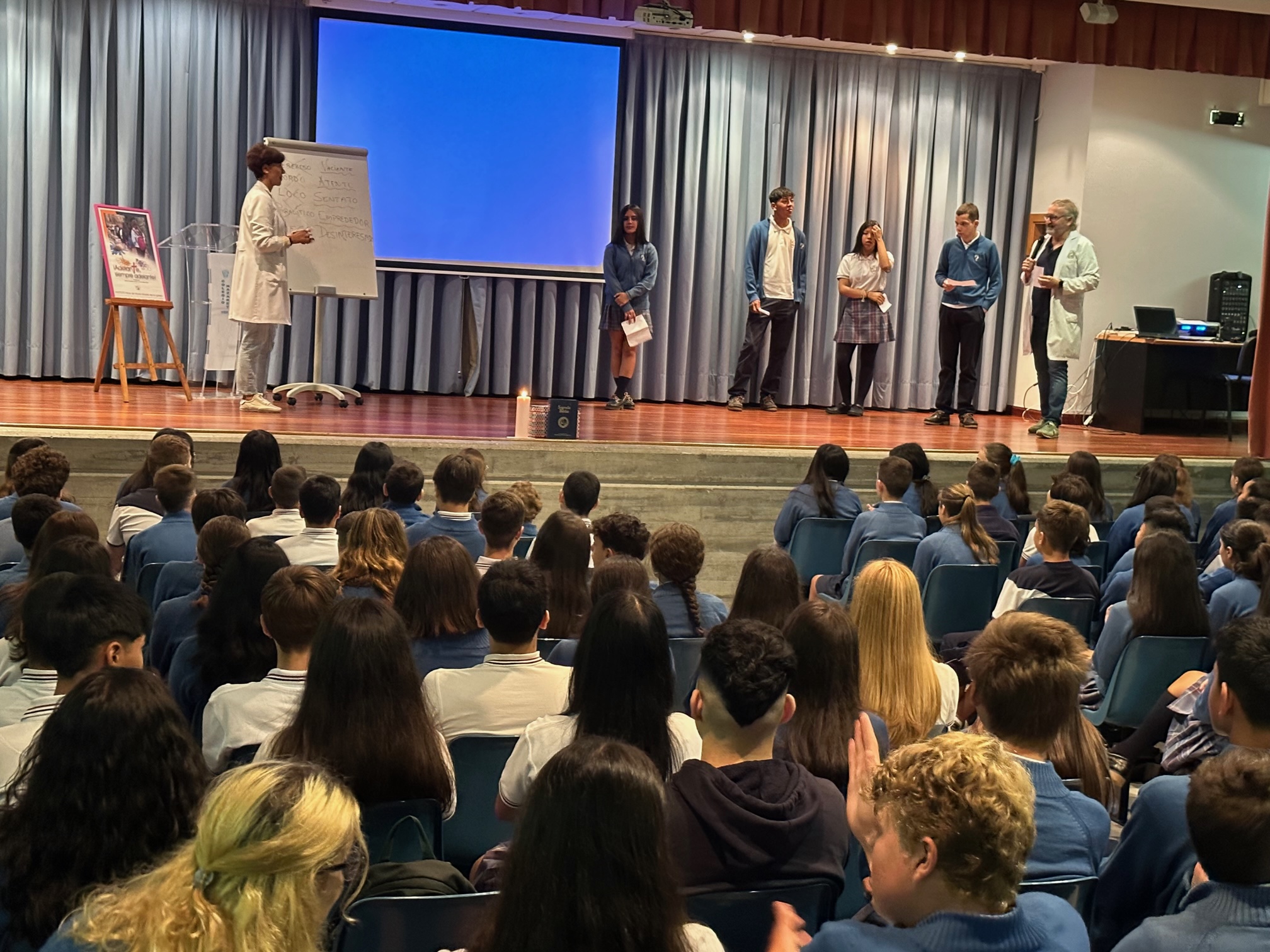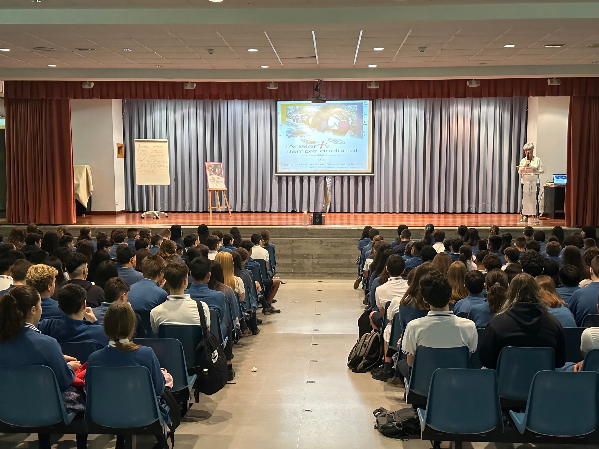 Hoy recibimos en el salón de actos a los alumnos de ESO, llenos de ilusión, esperanza (y sueño), para comenzar un nuevo curso. Mari Nieves, Coordinadora de Pastoral, dirigió una actividad de acogida para todos basada en el lema que nos acompañará este año: "¡AdelanTe, siempre adelante!"