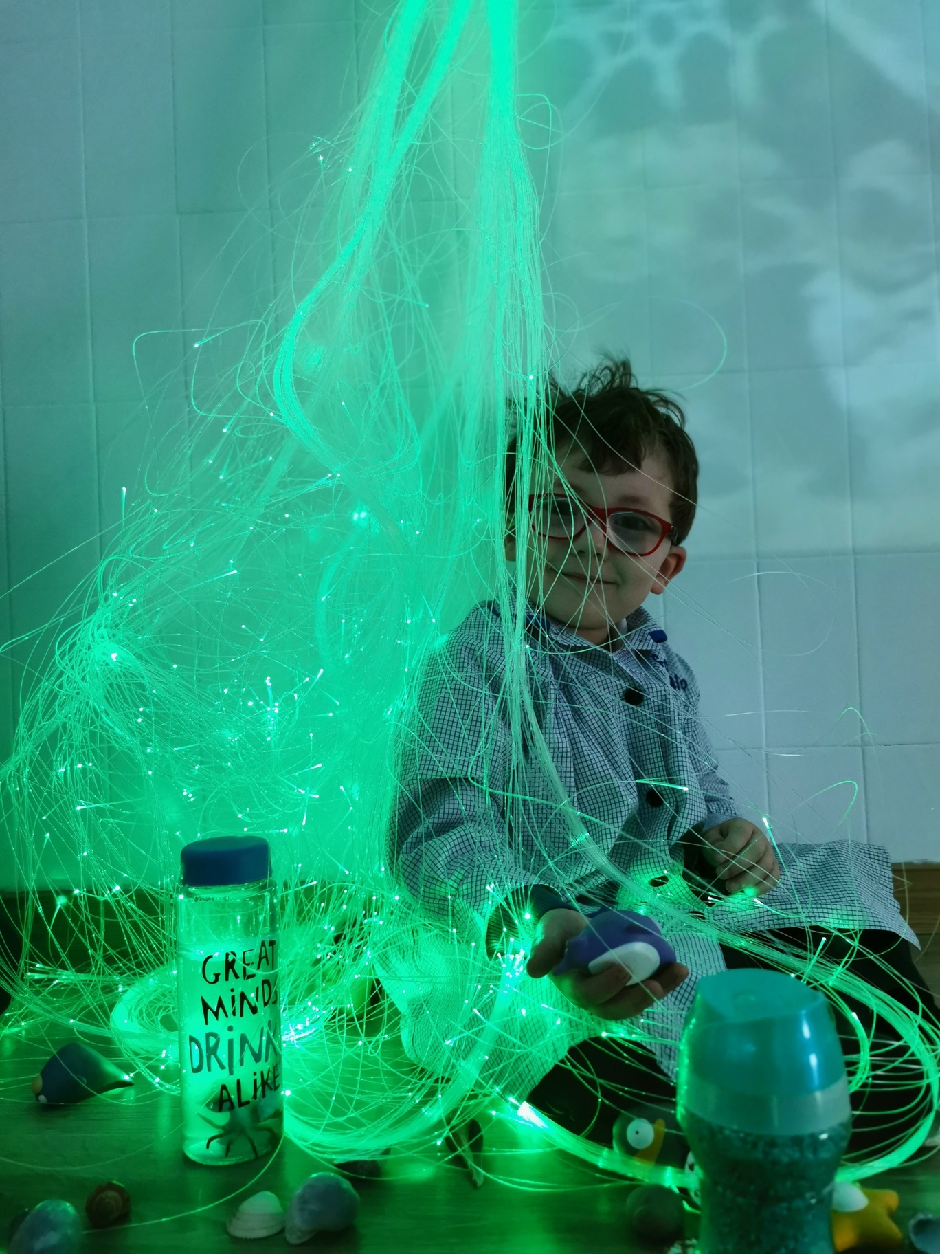 Después de mucho trabajo e ilusión, por fin estrenamos hoy el aula multisensorial de nuestro colegio, pionero en este espacio entre los colegios de Oviedo. Esta sala ha sido diseñada para que nuestro alumnado adquiera aprendizajes basados en el descubrimiento y la experimentación. Se trata de que aprendan mediante los cinco sentidos dentro de un espacio relajado. De esta manera, comprenden y recuerdan mejor lo que ven, tocan, huelen, oyen y sienten en cada rincón.