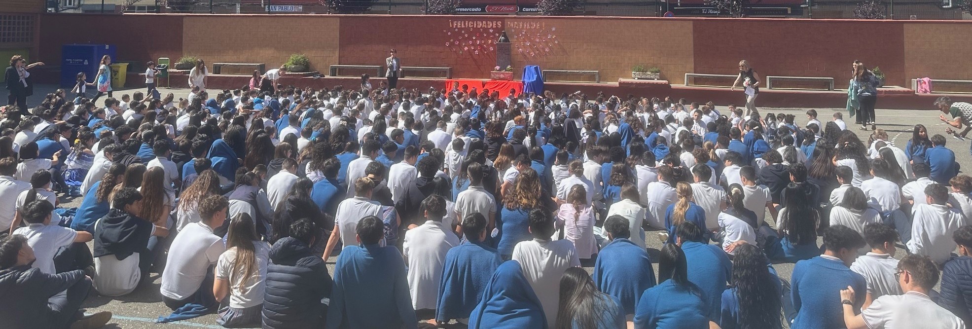 Finalizada la misa, todo el colegio participó en una ofrenda floral en el patio, ante la imagen de M. Matilde Téllez. Los peques de la Guardería también quisieron felicitar a Madre Matilde en su cumpleaños con un divertido vídeo.