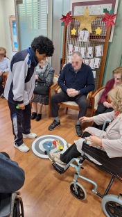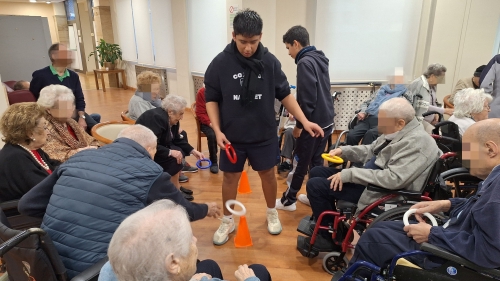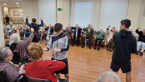 Esta última semana de clase del 2024, varios grupos de alumnos de 2º de ESO acudieron a la residencia de mayores Domus VI La Florida para realizar una sesión de Educación Física diferente. Allí, pusieron práctica su trabajo de investigación trimestral acerca de la gimnasia adaptada a personas mayores realizando diferentes ejercicios de movilidad articular, de contenido lúdico y de socialización. Además, compartieron experiencias con los mayores de sus épocas pasadas, donde el ejercicio físico se basaba en el trabajo que realizaban en sus profesiones ya desde bien jóvenes: agricultura, ganadería, minería...