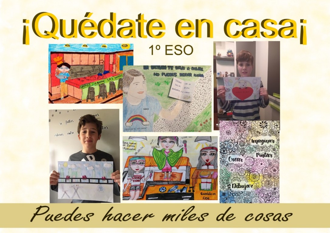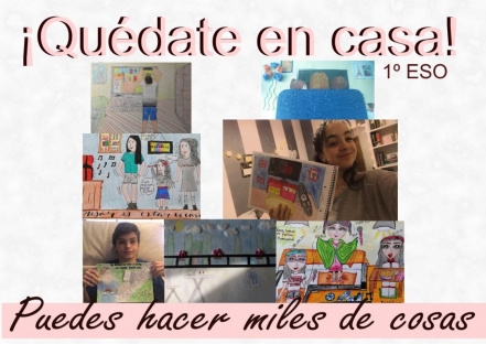 Los alumnos de 1º y 3º de ESO de la materia de Educación Plástica y Visual han realizado el proyecto ¡Quédate en casa!. Las actividades son una invitación a reflexionar sobre la importancia que tiene una buena actitud y responsabilidad en momentos complicados como los que estamos viviendo.