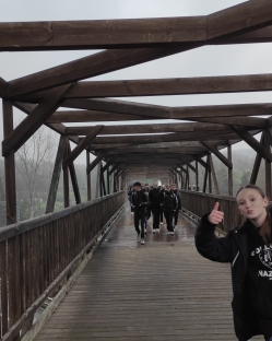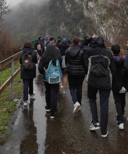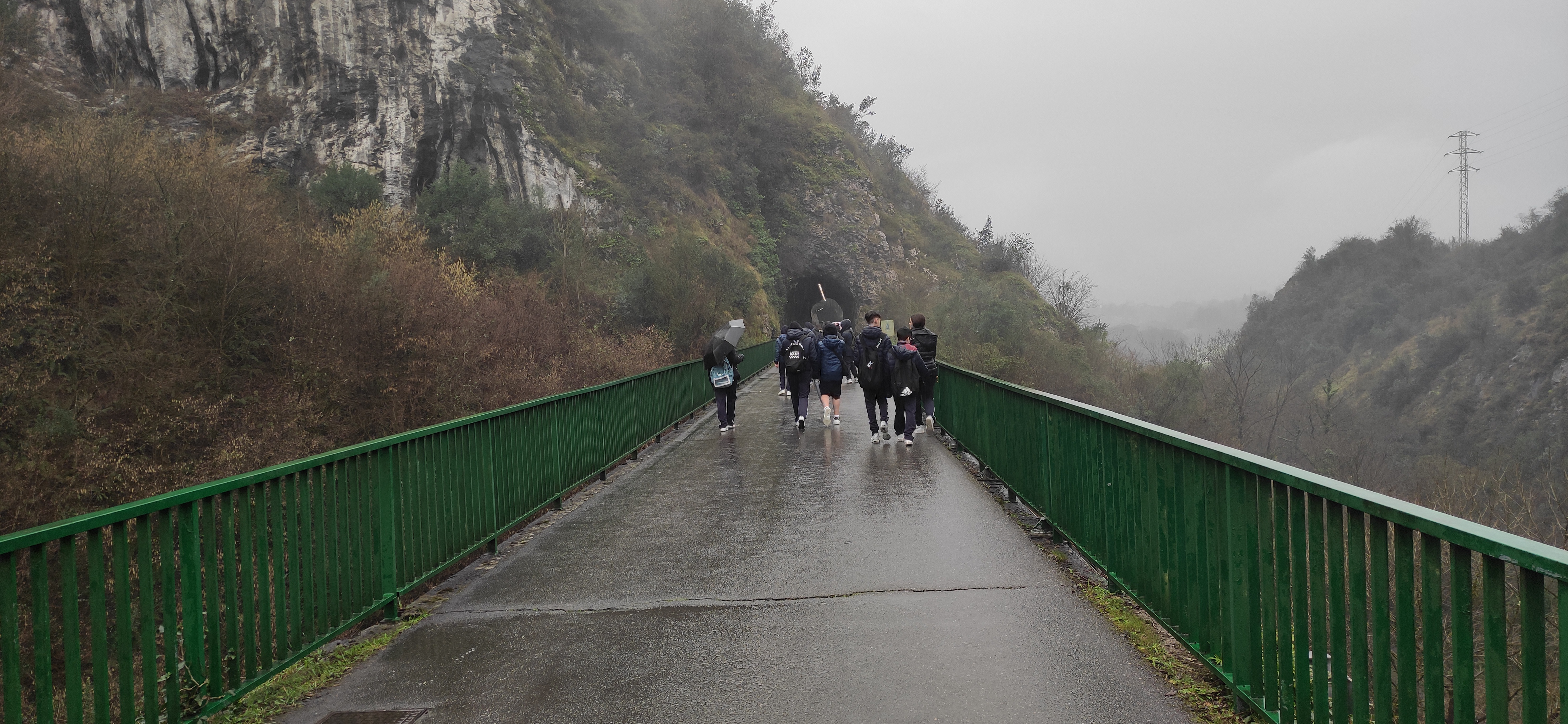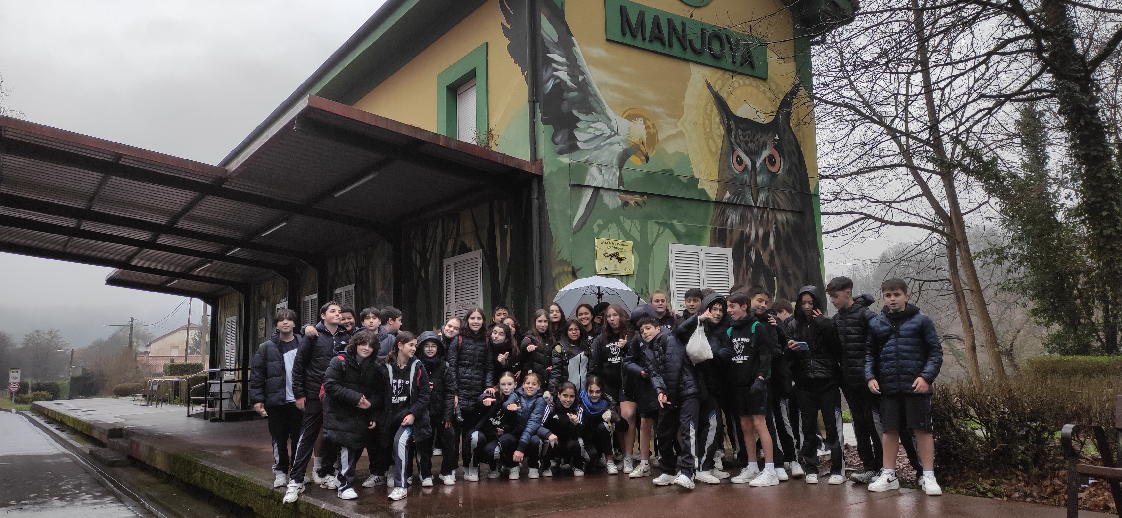 Los alumnos de 1º de ESO acudieron el pasado martes, 24 de enero, acompañados de Diego (profesor de E. Física) y de Aroa (tutora de 1º B), al Parque de Invierno para realizar la ruta por la senda verde hasta la localidad de Fuso. Alcanzando el kilómetro 2,2, hicieron una parada ante la antigua estación de la Manjoya, ambientada con murales de animales, donde se hicieron varias fotos de recuerdo. Rodeados de vegetación y acompañados del cantar de las aves, fueron atravesando túneles: "El Molineru", de 150 metros de longitud, "El Mergallu" de 70 metros, el de "Premañana" de 30 metros y, el último y más largo, el túnel "Veneros", de 260 metros de longitud.