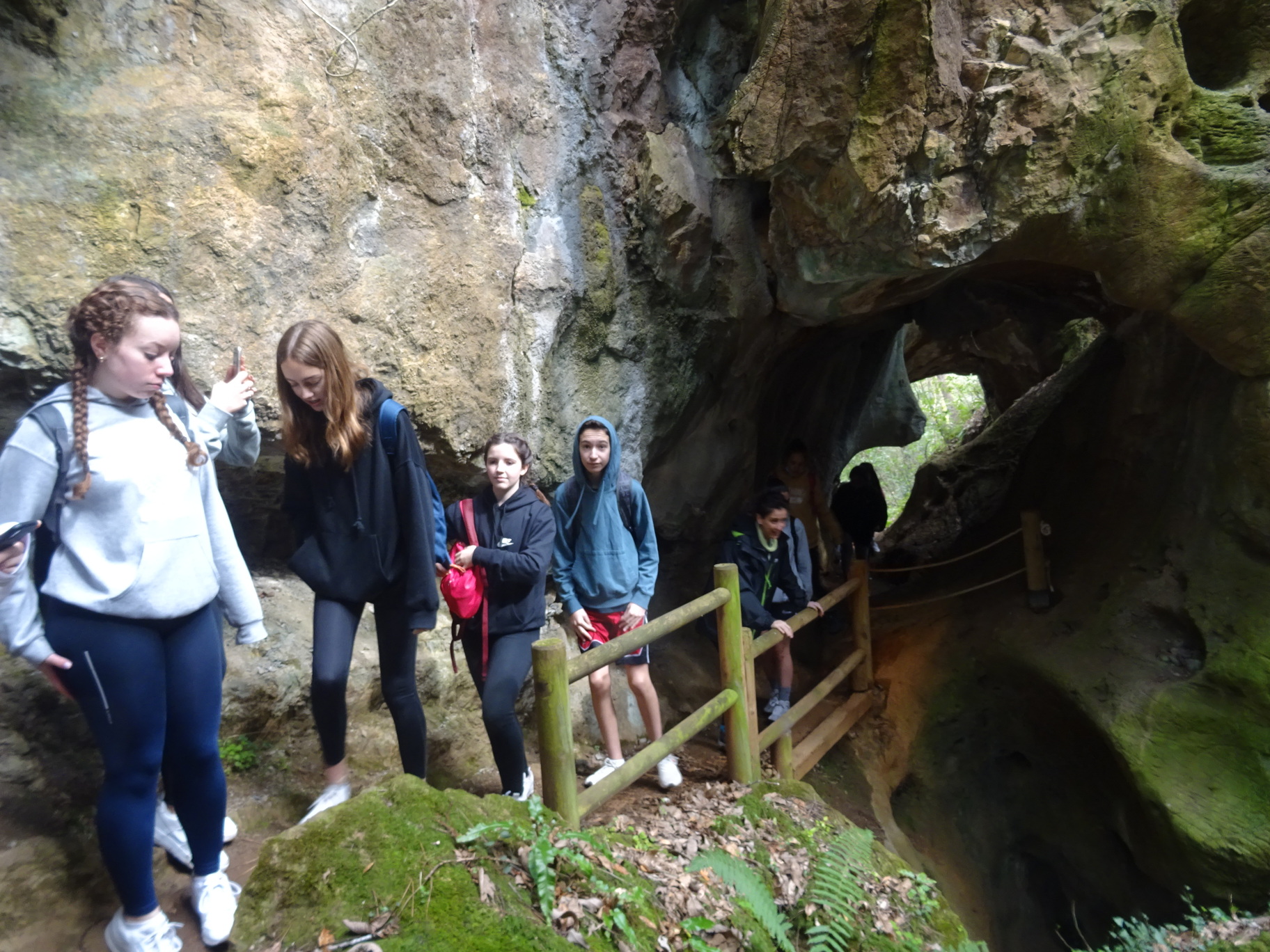 Los alumnos de 4º ESO A, acompañados del profesor de prácticas David López y los profesores Marta Madera y Marcial Serrano, visitaron el 25 de marzo la zona kárstica del Parque Natural de las Covas de Andía y posteriormente el Cabo Blanco, ambos en el concejo de El Franco. En Andía, aprendimos de la mano de una guía los procesos a los que sometieron los mineros romanos del S. I d.C. a esta zona caliza para extraer oro.
