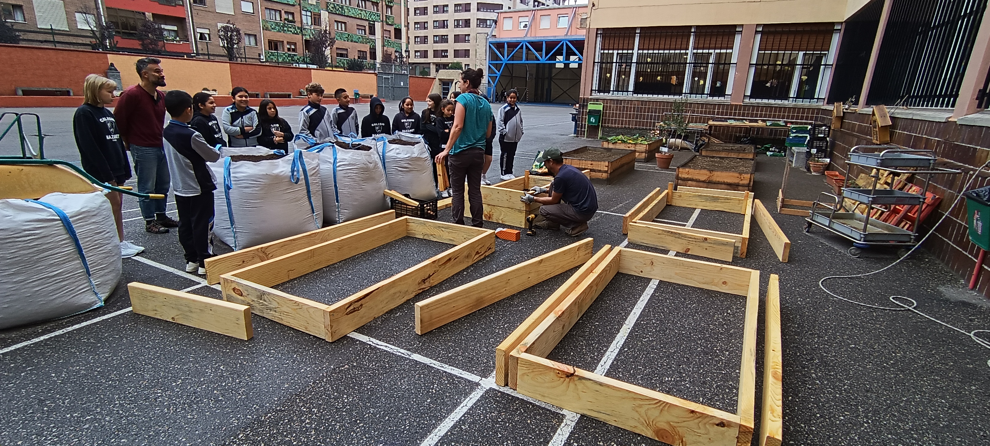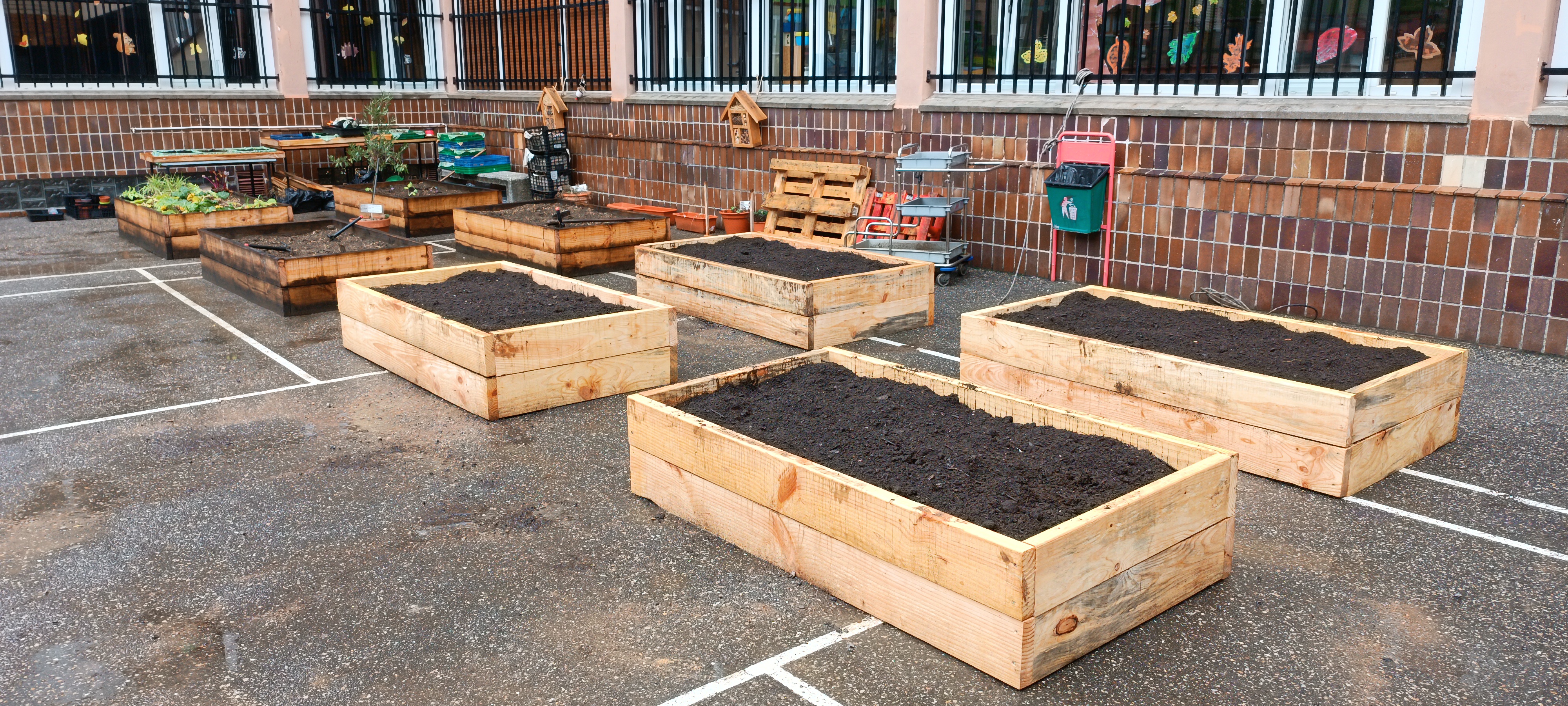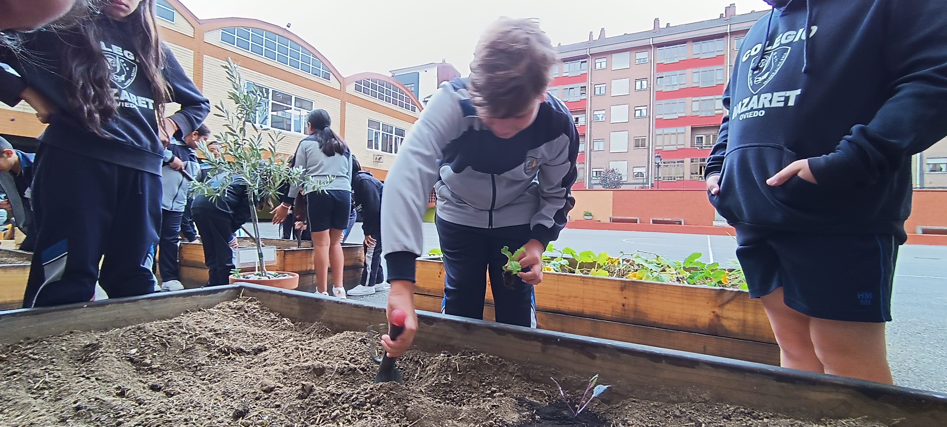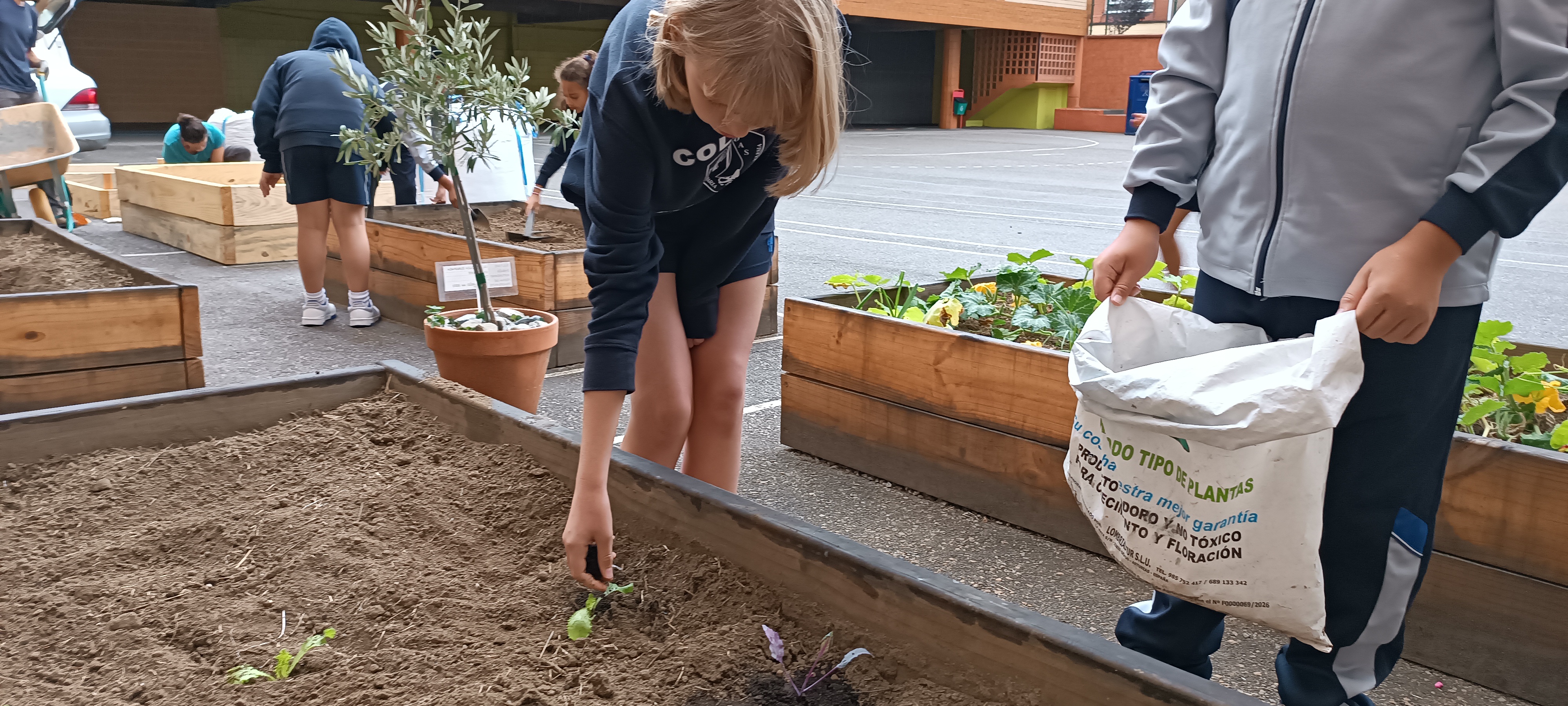 En el Proyecto Cooperativa Agrícola Escolar, seguimos trabajando para formar a nuestro alumnado, ampliando el espacio dedicado al huerto escolar ecológico. Precisamente, esta semana hemos armado otros cuatro bancales y hemos aprovechado el momento para que los alumnos puedan ver cómo es su estructura y posterior llenado con la futura tierra de cultivo. Aunque el tiempo no nos acompañó mucho, pues la lluvia entró en escena en varias ocasiones, hemos podido trasplantar unas escarolas y berzas. Como siempre, el refranero vino en nuestra ayuda: "al mal tiempo, buena cara".