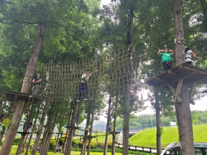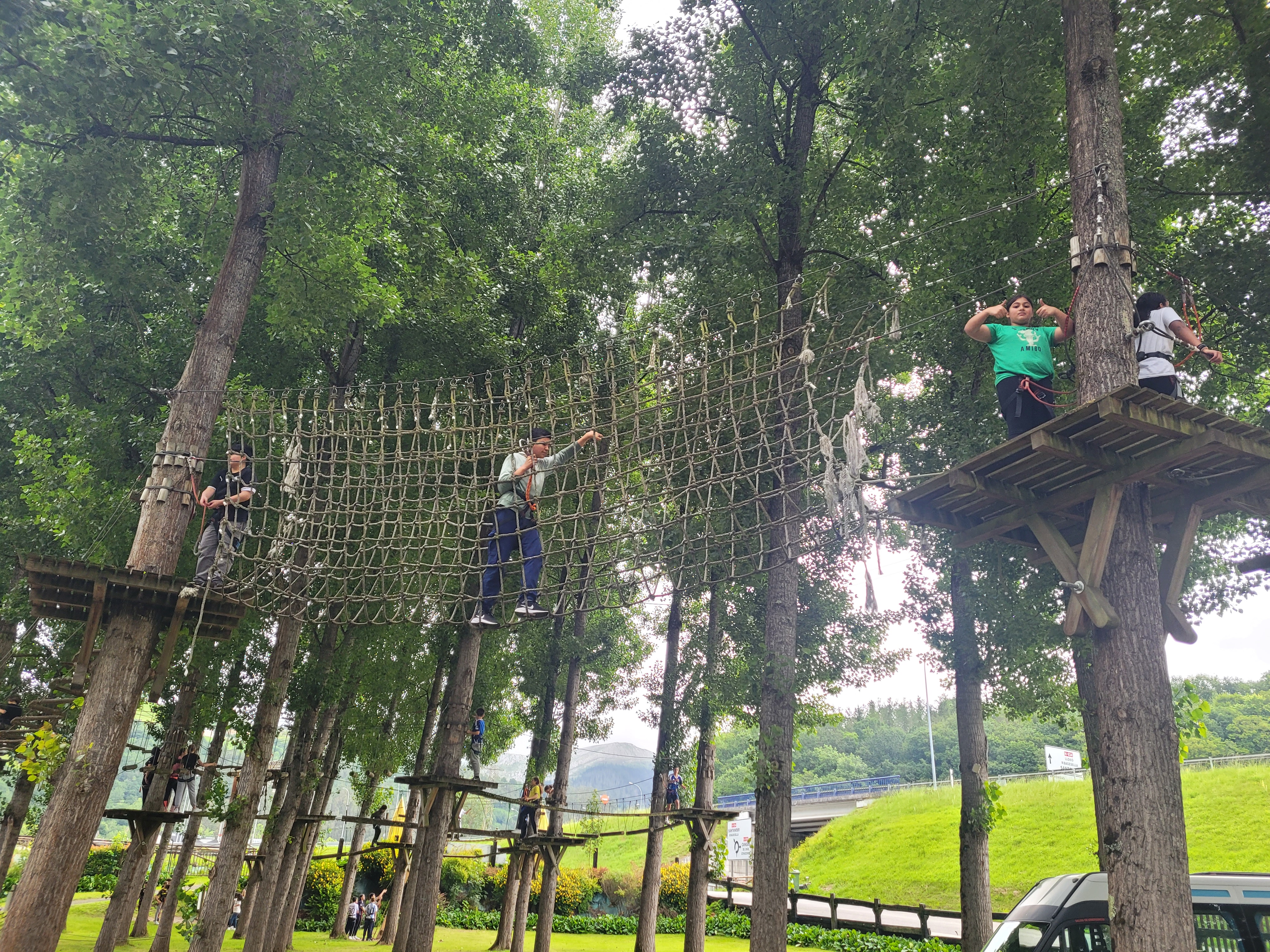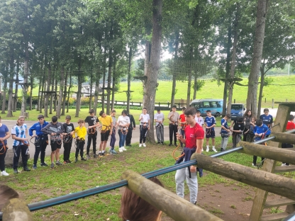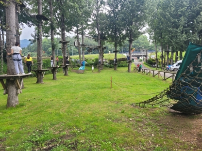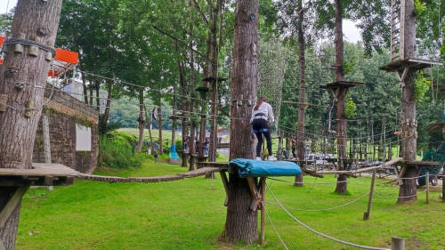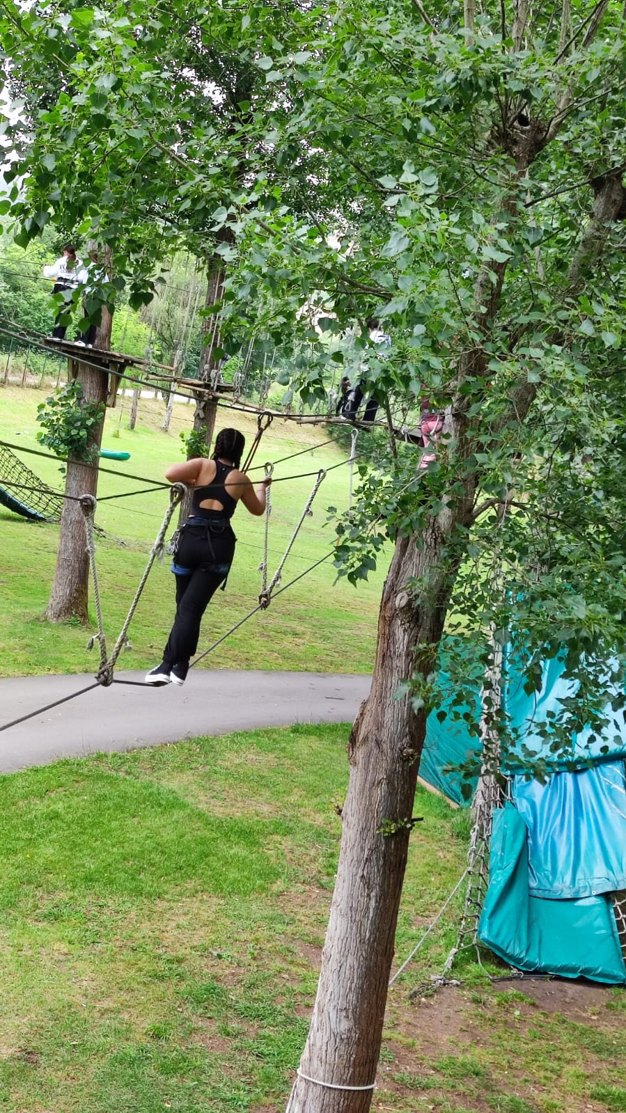Los alumnos de 1º y 2º de ESO realizaron una actividad lúdica en Parque Aventura (Arriondas) para despedir el curso, acompañados por sus tutores. En Parque Aventura, los alumnos disfrutaron con un plan activo y divertido, una aventura en plena naturaleza, con la que todos disfrutaron de una experiencia única: tirolinas, puentes mono, lianas de Tarzán, trapecios volantes, puentes tibetanos… Cada alumno y profesor decidió cómo hacer su recorrido, poniéndose sus propios retos y límites, siempre con la supervisión monitores especializados para que reinara la seguridad durante todo el recorrido.