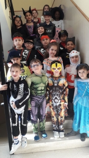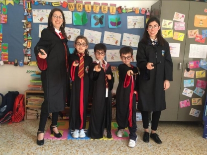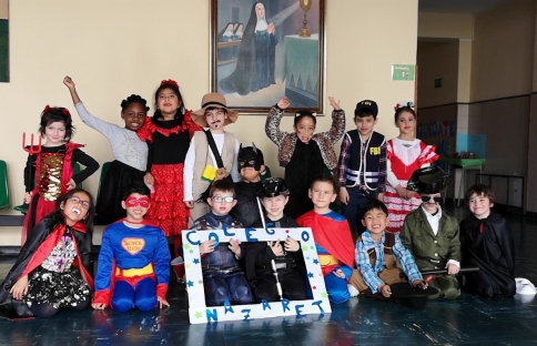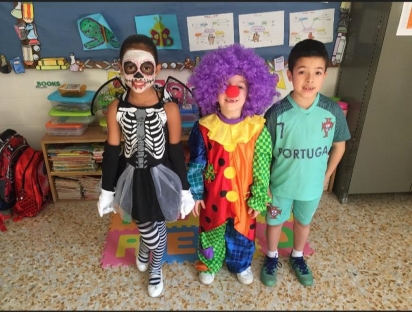 La soleada tarde del viernes, 28 de febrero, anticipándonos al Martes de Carnaval, celebramos nuestra fiesta en el Colegio. Princesas, héroes, piratas, payasos, policías, indios, guerreros, animales de la selva... llenaron el patio de risas, juegos y colores. Niños y profes disfrutaron en una divertida fiesta en la que no faltaron el delicioso chocolate y los bizcochos, ofrecidos por la AMPA.