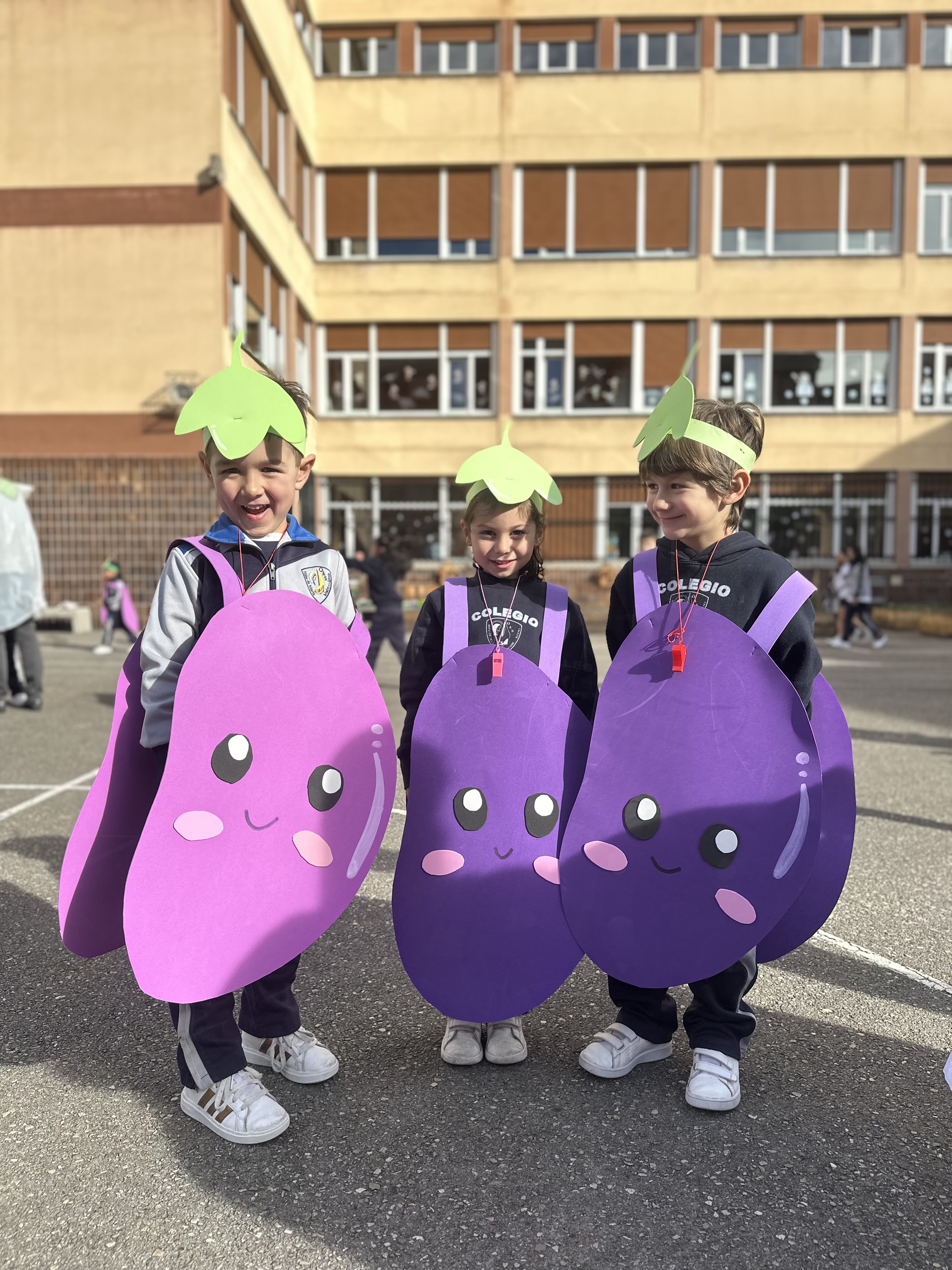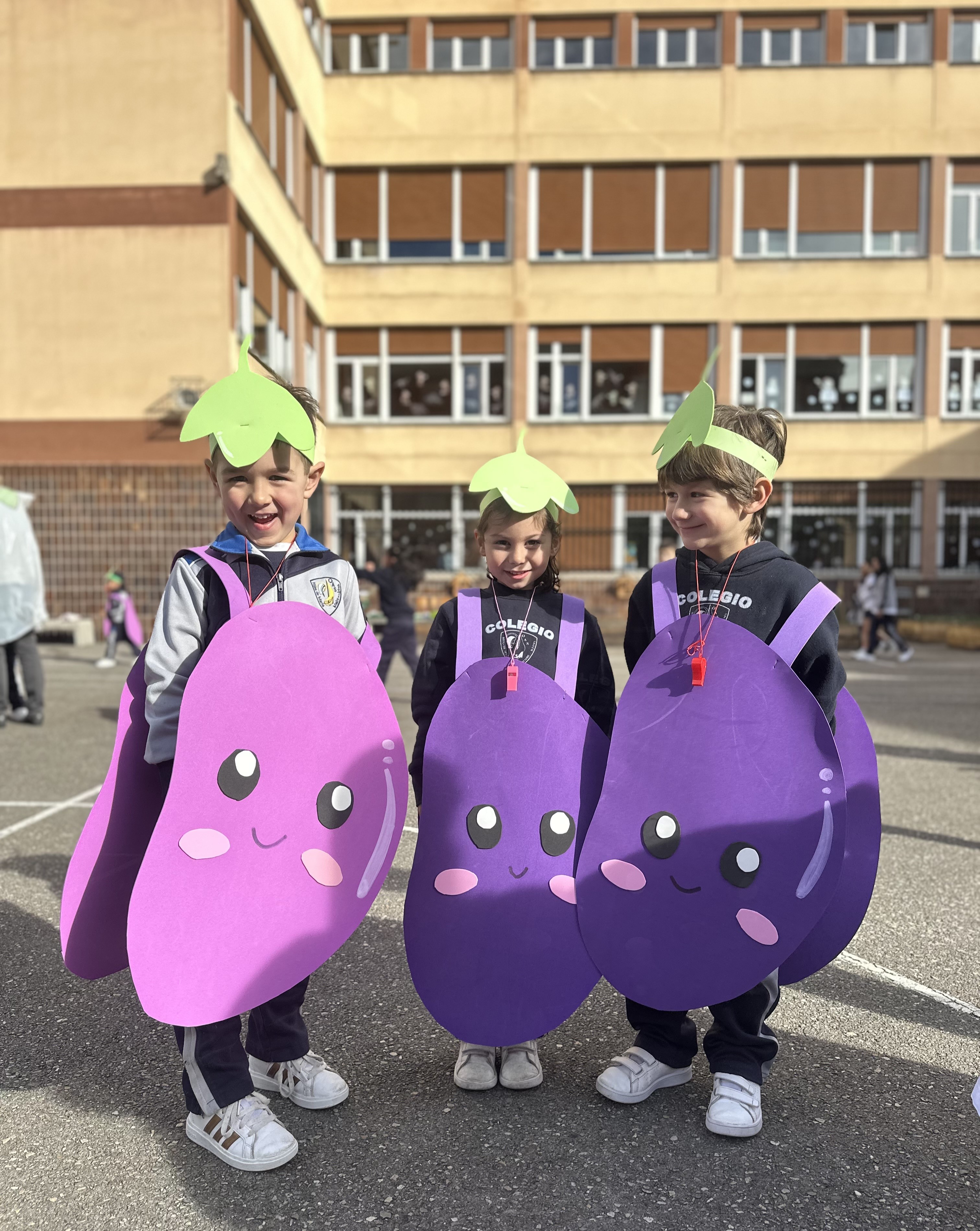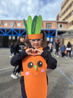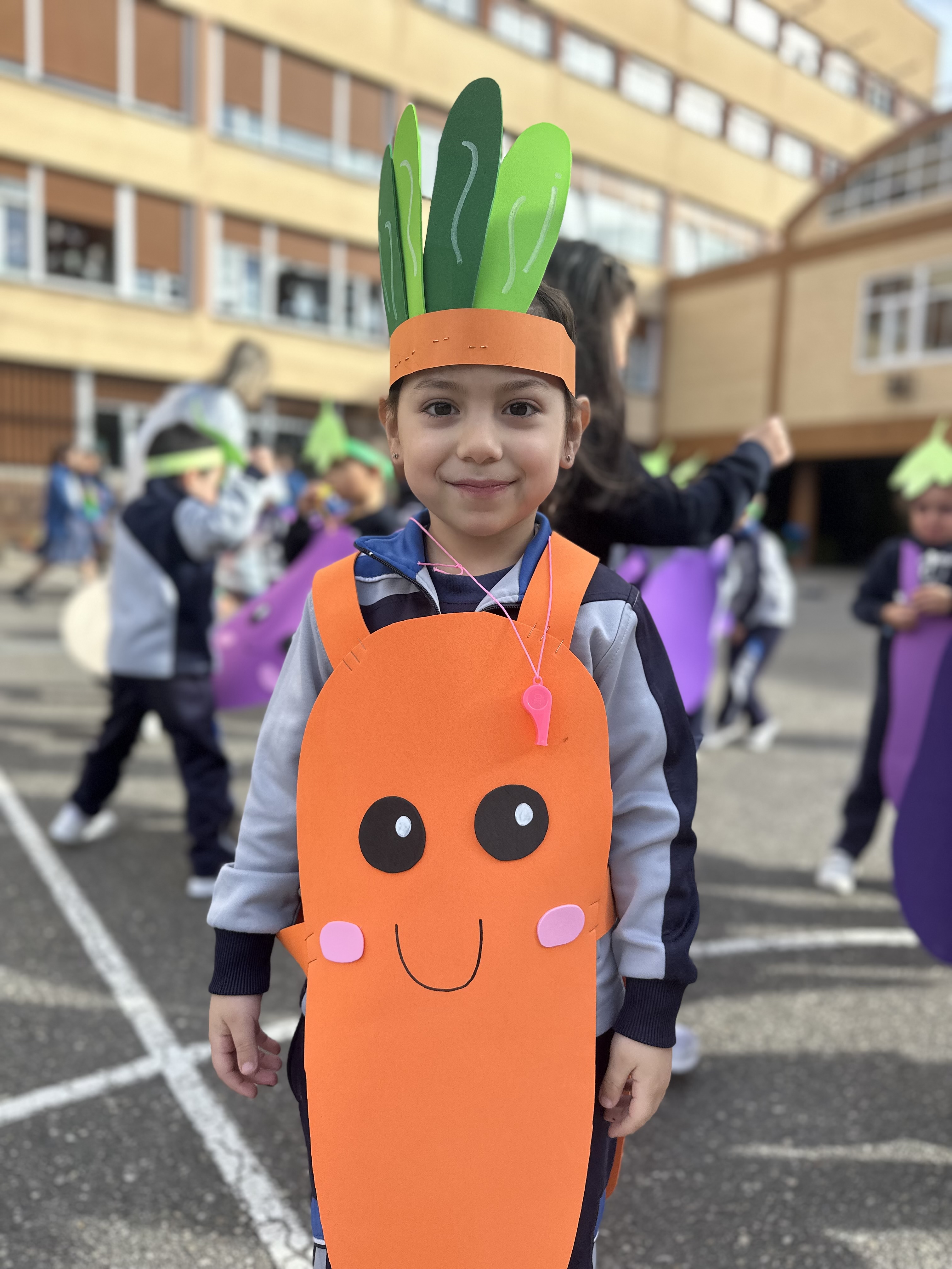 Por otra parte, el ODS 2 (Hambre Cero) pretende poner fin al hambre en nuestro mundo y asegurar el acceso de todas las personas, en particular a las personas pobres y en situaciones de vulnerabilidad, a una alimentación sana, nutritiva y suficiente durante todo el año. Por este motivo, los alumnos de Guardería, E. Infantil y E. Primaria se disfrazaron de frutas y verduras con trajes elaborados por ellos mismos de material desechable, y participaron en un desfile de carnaval aprovechando el sol que nos acompañó durante la mañana.