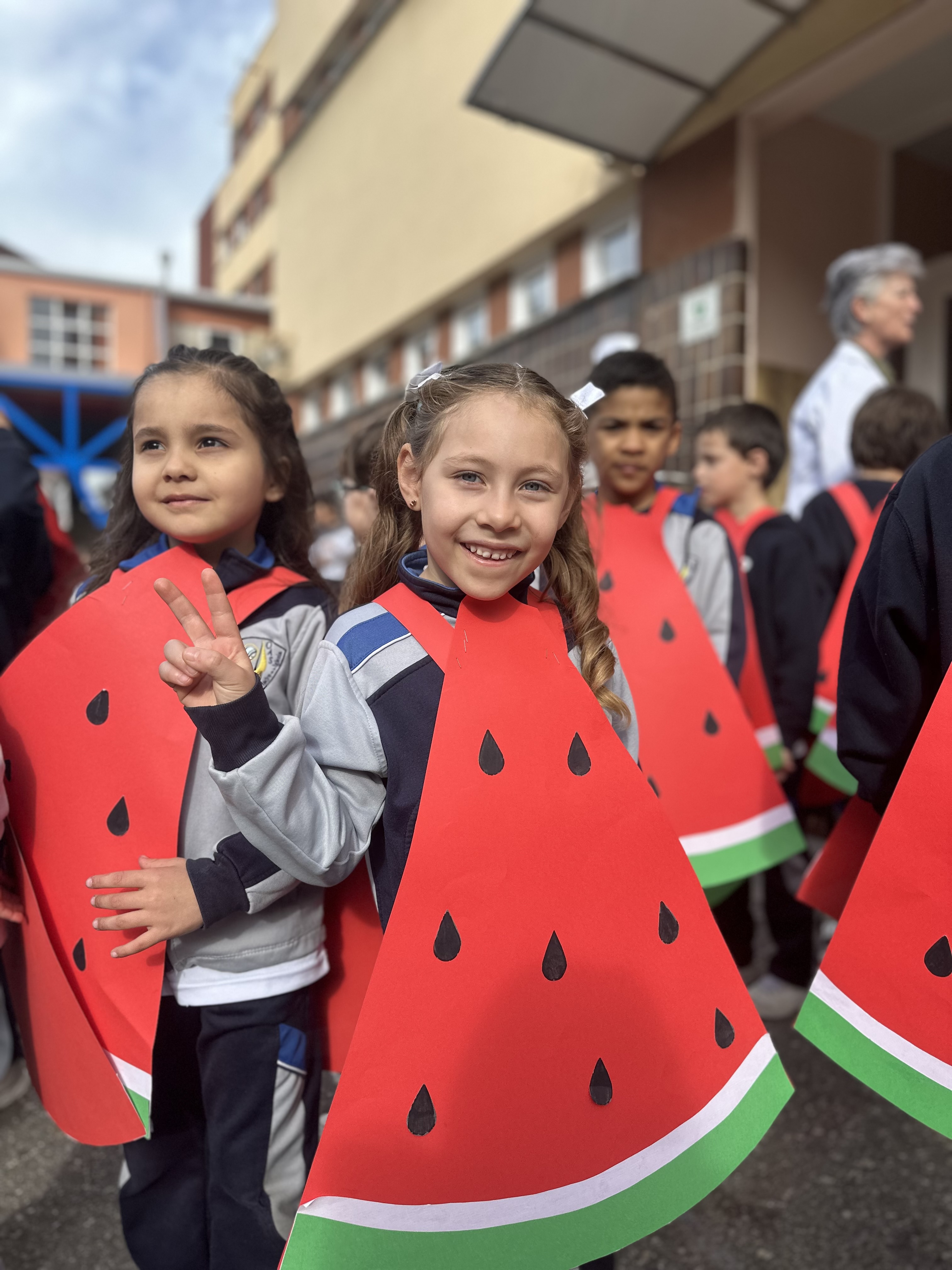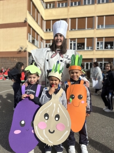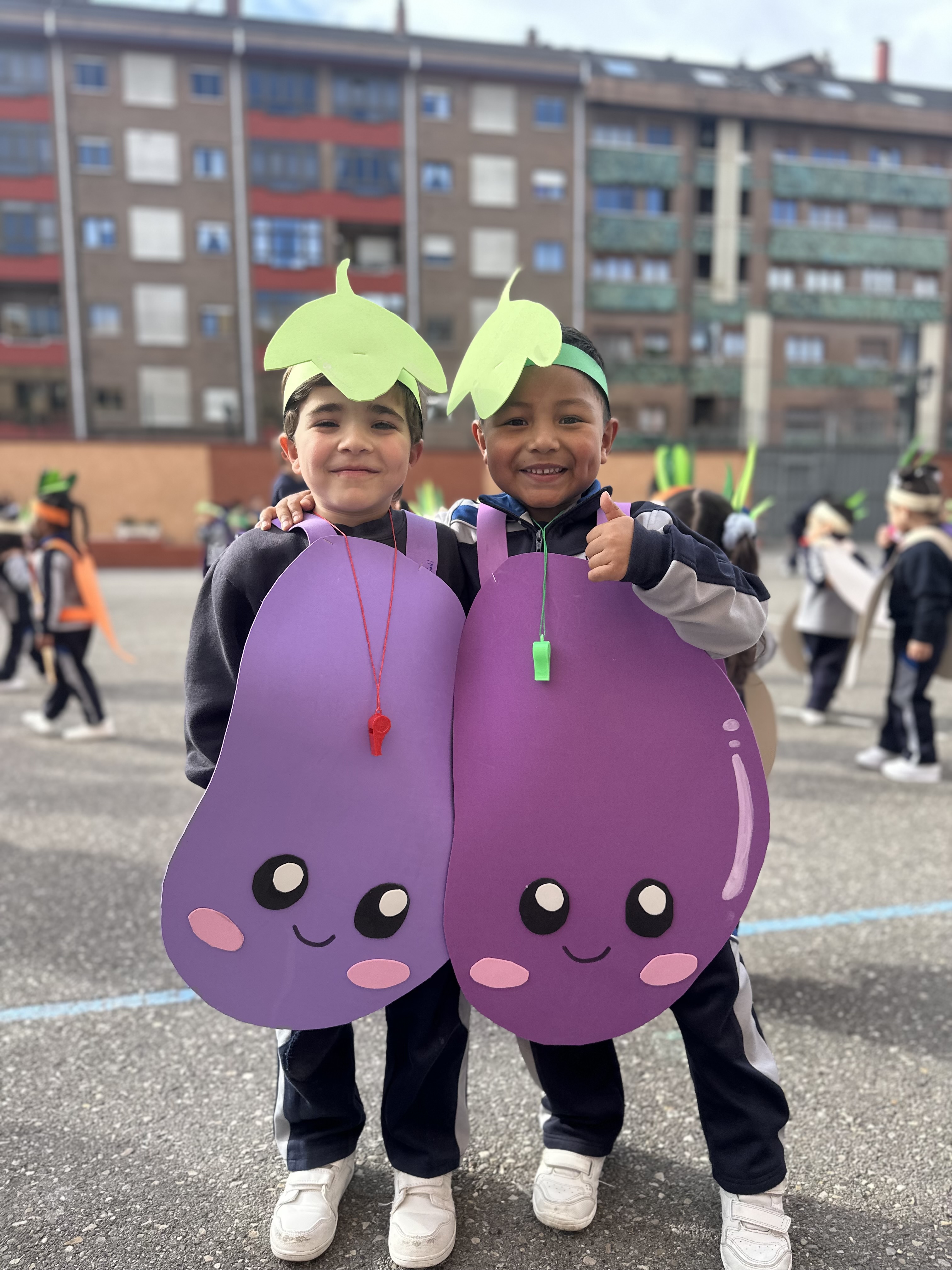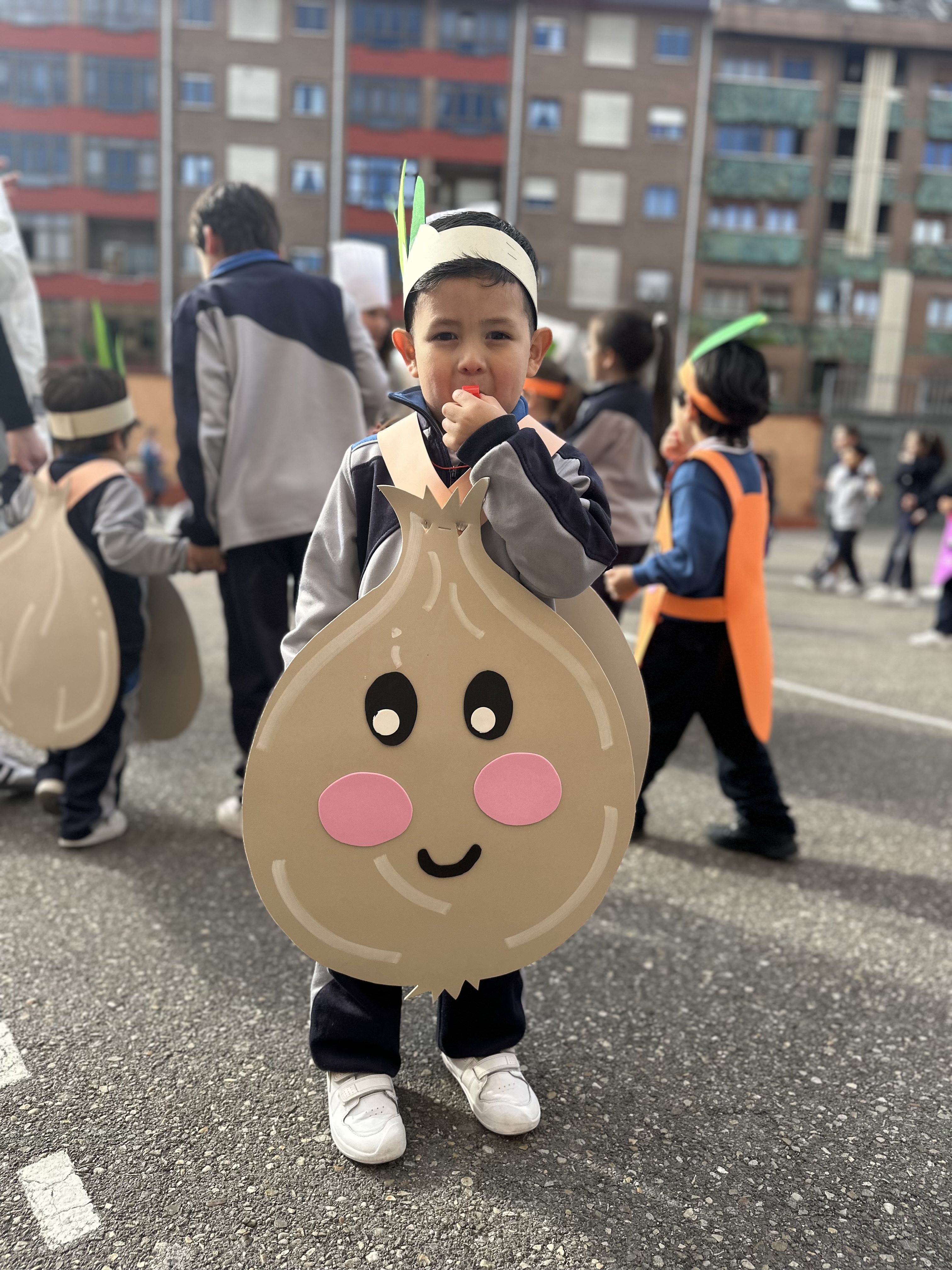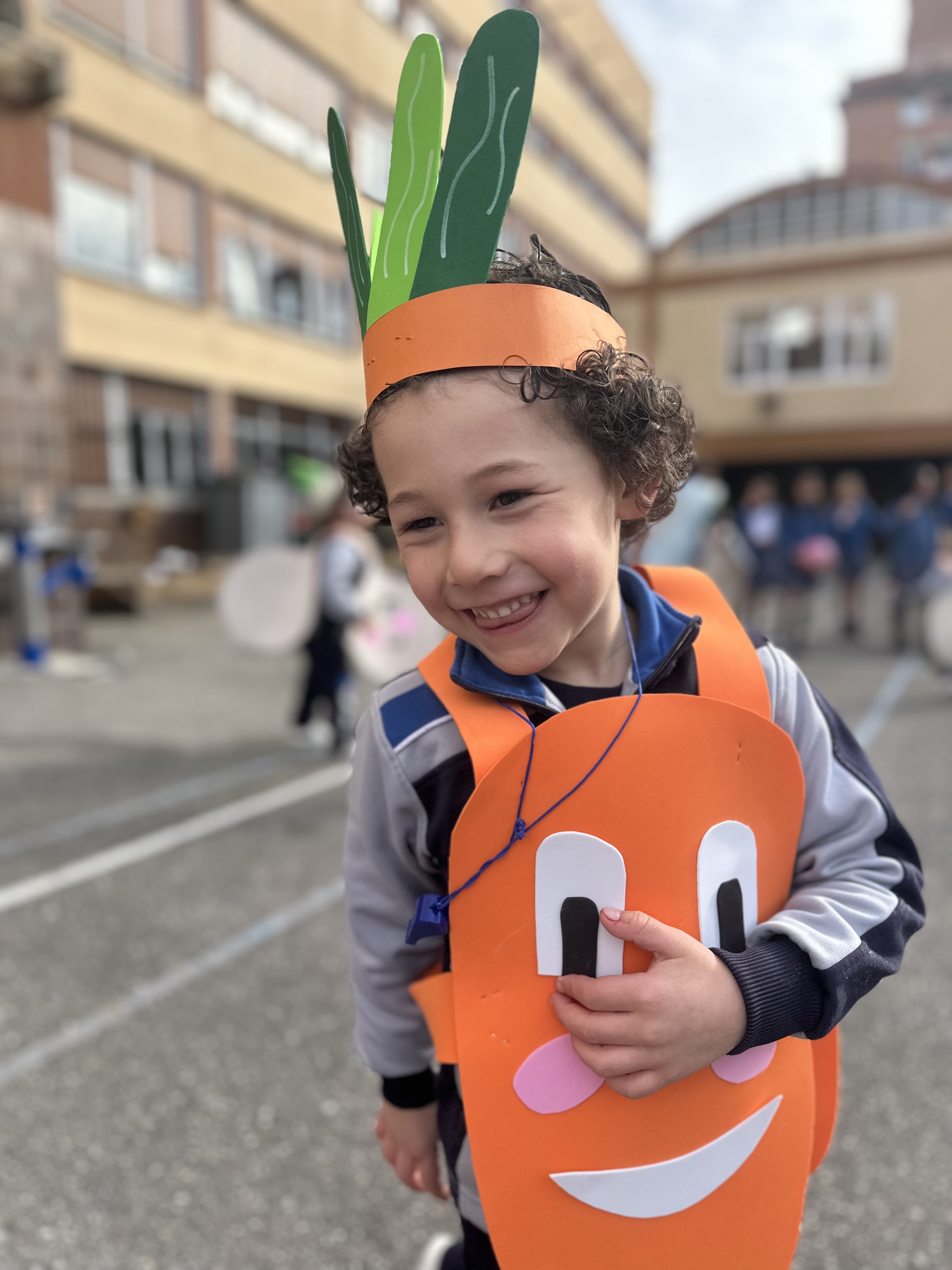 Por otra parte, el ODS 2 (Hambre Cero) pretende poner fin al hambre en nuestro mundo y asegurar el acceso de todas las personas, en particular a las personas pobres y en situaciones de vulnerabilidad, a una alimentación sana, nutritiva y suficiente durante todo el año. Por este motivo, los alumnos de Guardería, E. Infantil y E. Primaria se disfrazaron de frutas y verduras con trajes elaborados por ellos mismos de material desechable, y participaron en un desfile de carnaval aprovechando el sol que nos acompañó durante la mañana.