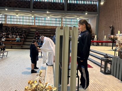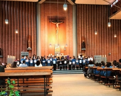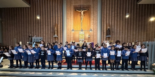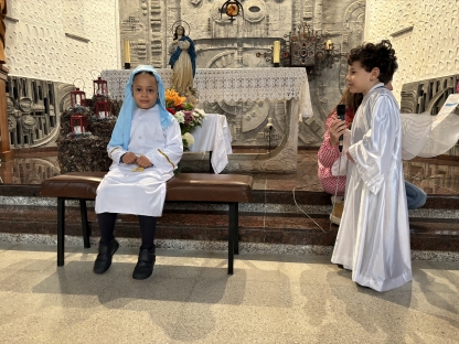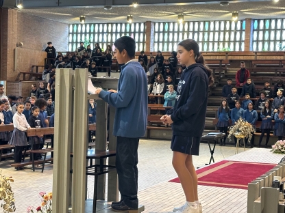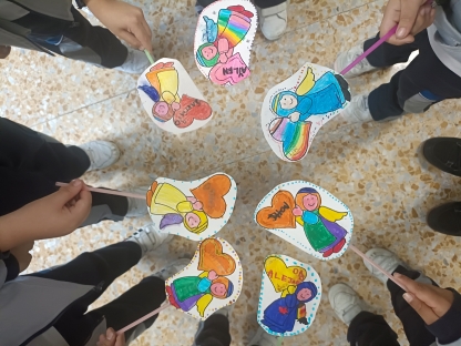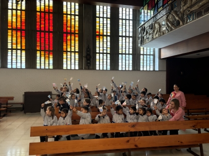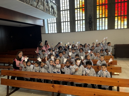 Los niños de E. Infantil, y primer ciclo de E. Primaria, por su parte, han bajado a la capilla del colegio para celebrar este día, como auténticos angelinos.