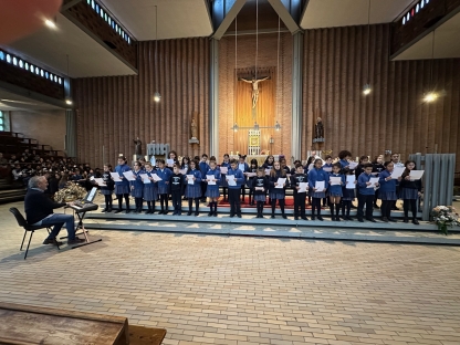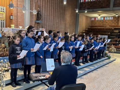 Hoy hemos celebrado la fiesta de la Inmaculada Concepción de María con una Eucaristía en nuestra Parroquia de San Pablo. En ella, los alumnos de 3º de E. Primaria nos obsequiaron interpretando con increíble dulzura "Junto a ti, María", acompañados al piano por el profesor de Música, David.