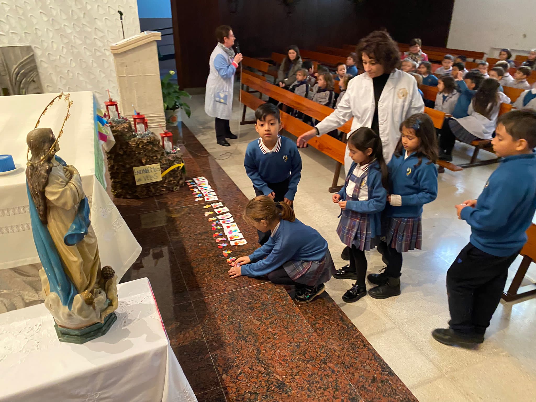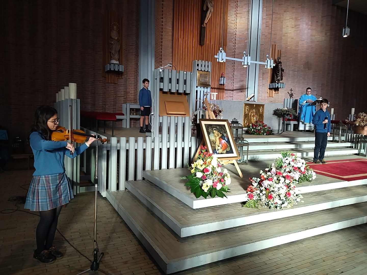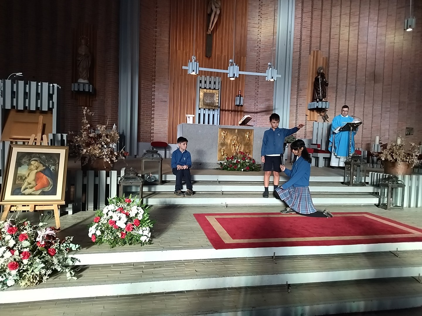 Por su parte, los niños y niñas de E. Infantil y primer ciclo de E. Primaria acudieron a la capilla del Colegio para realizar su celebración del Día de La Inmaculada, en la que también participaron activamente en un clima festivo lleno de alegría.