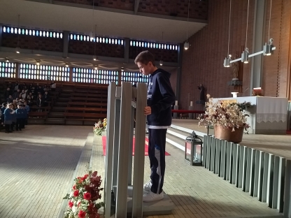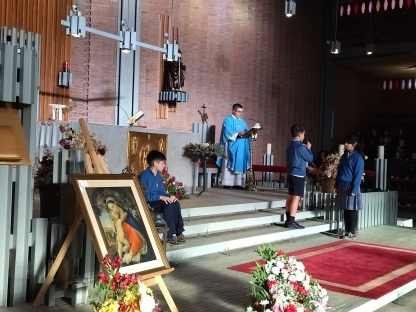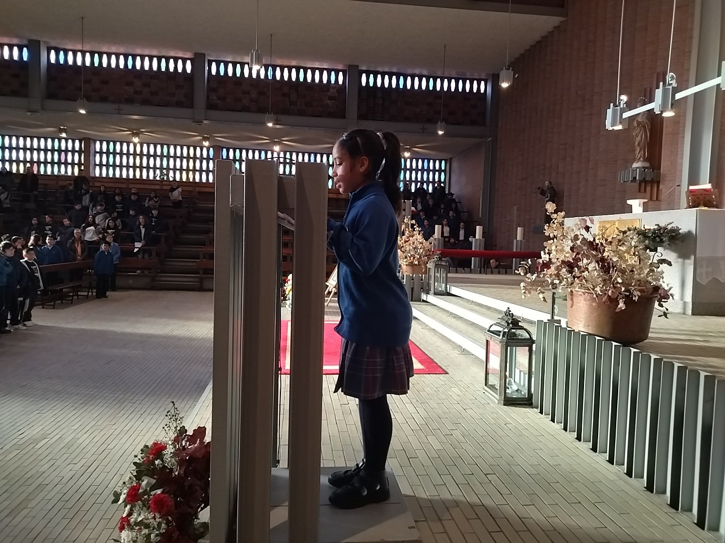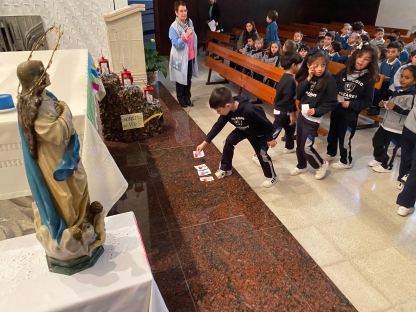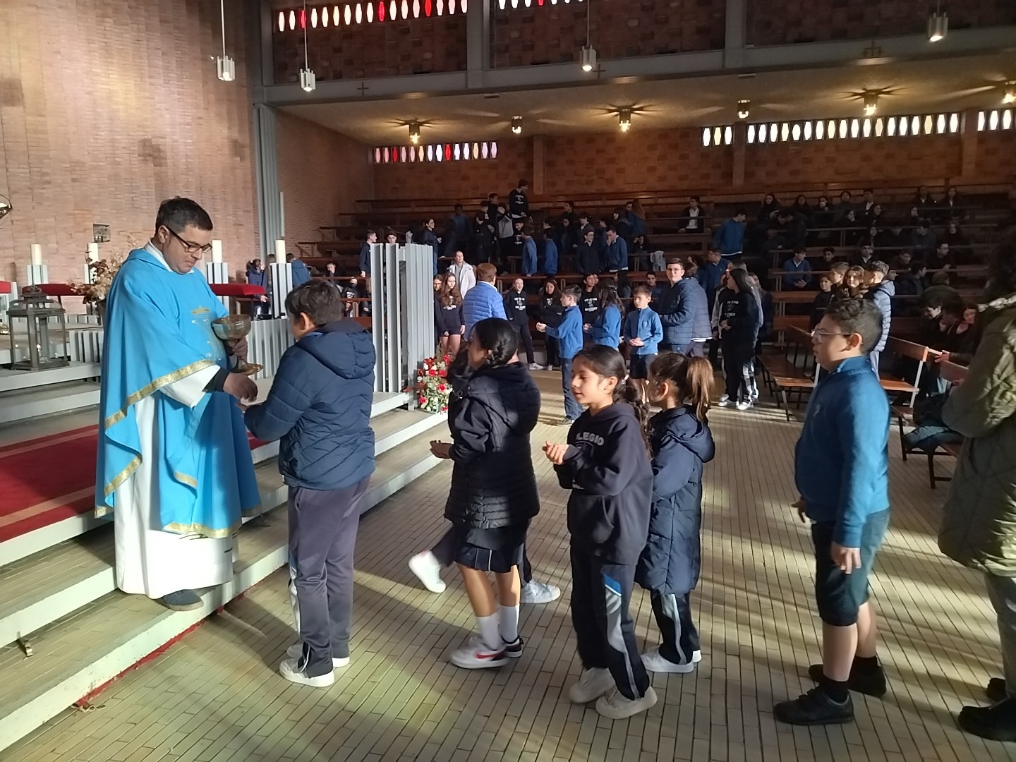 Por su parte, los niños y niñas de E. Infantil y primer ciclo de E. Primaria acudieron a la capilla del Colegio para realizar su celebración del Día de La Inmaculada, en la que también participaron activamente en un clima festivo lleno de alegría.