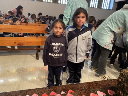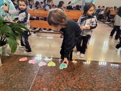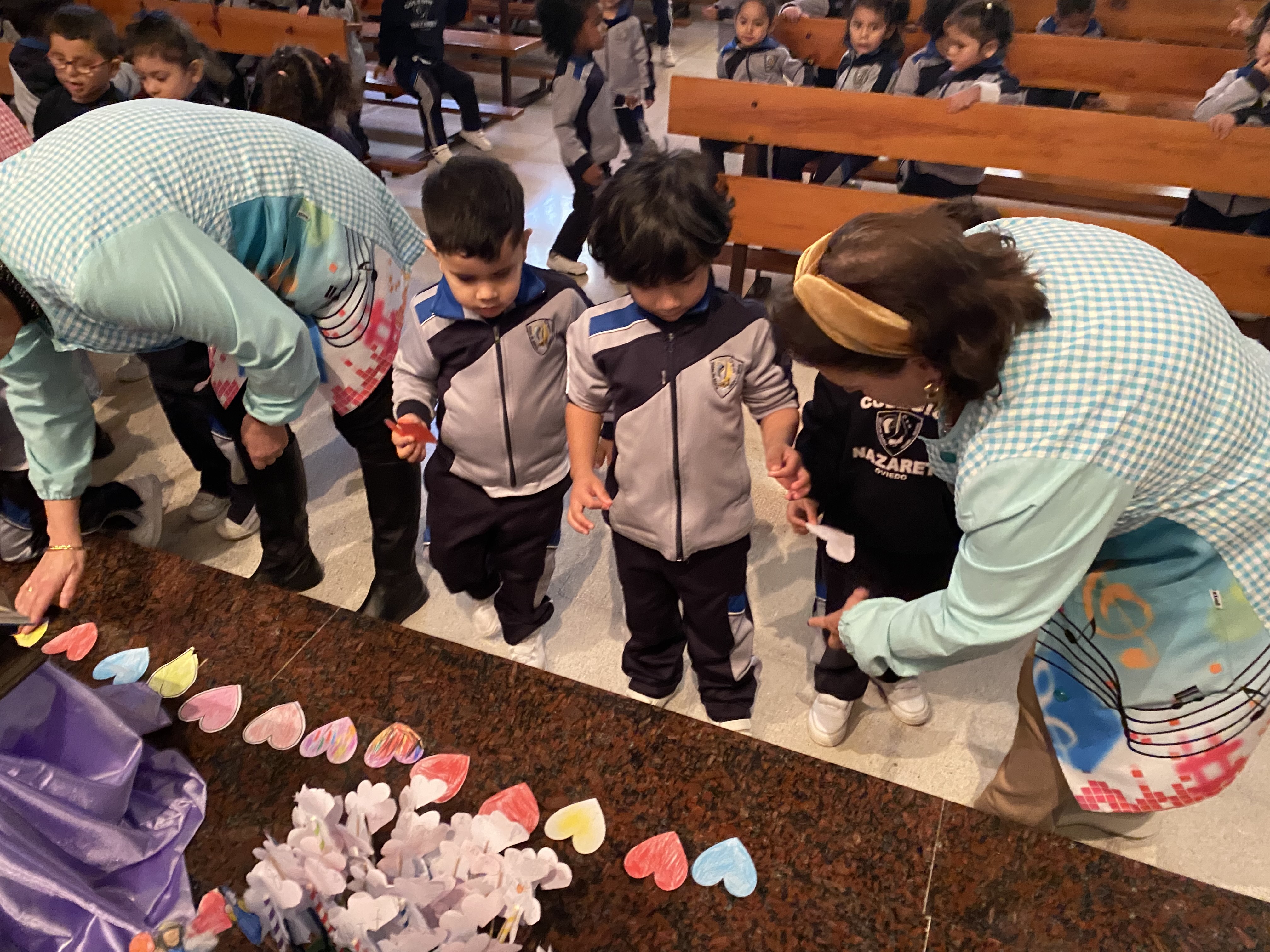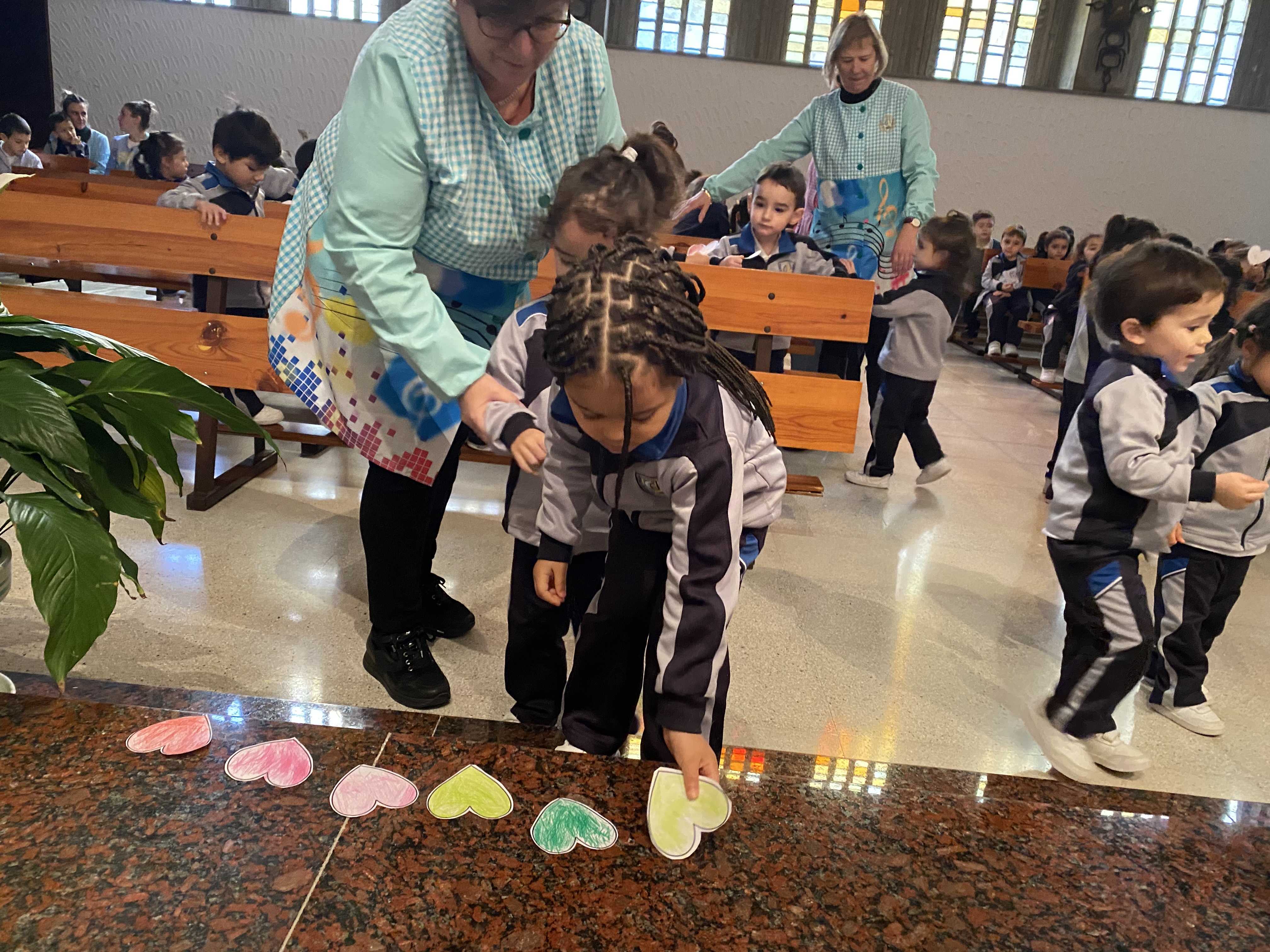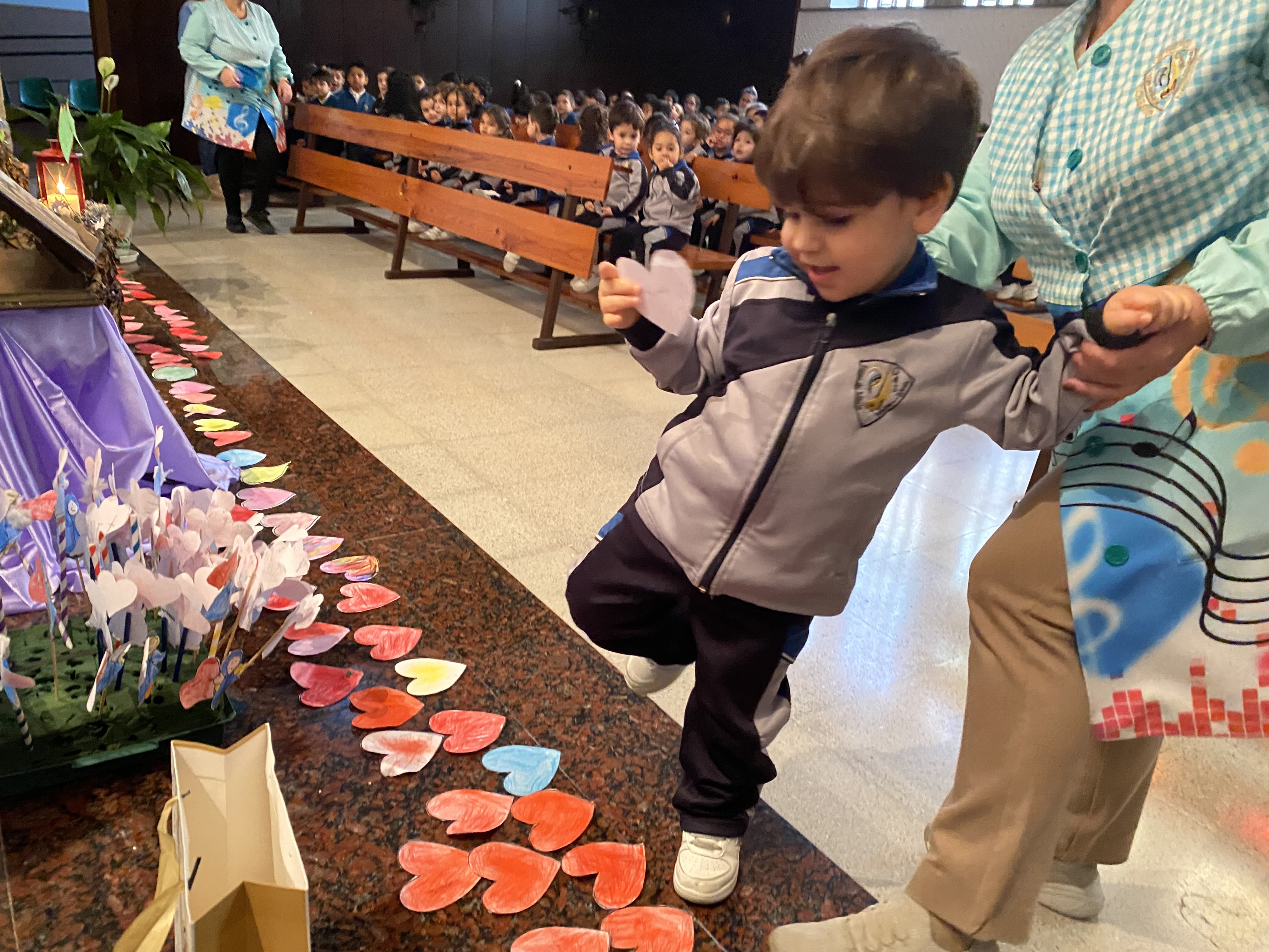 Este viernes, los alumnos de todas las etapas celebraron la nueva vida en el cielo de nuestra querida Madre Matilde y los más pequeños le ofrecieron unos bonitos corazones para demostrarle su amor.