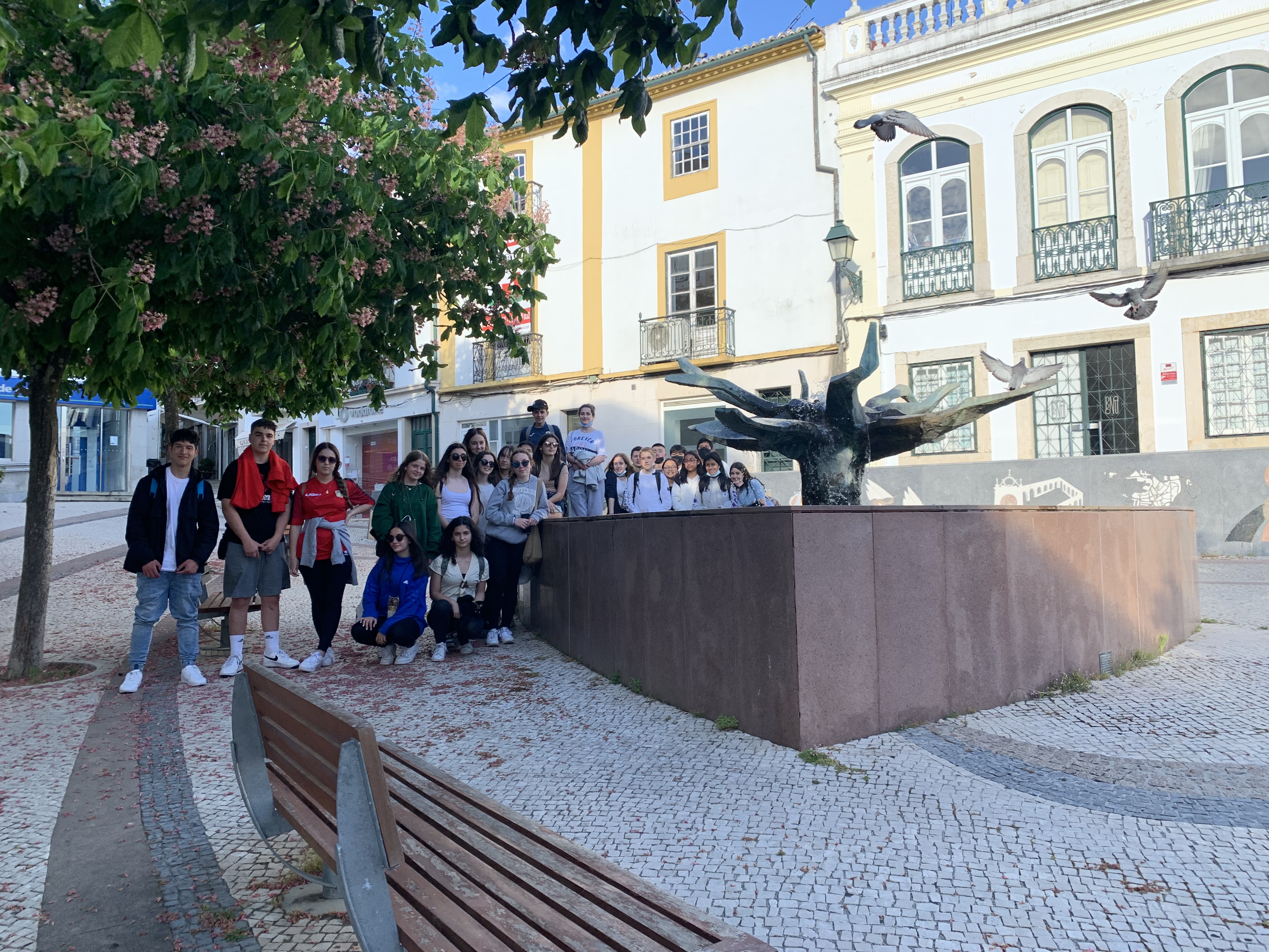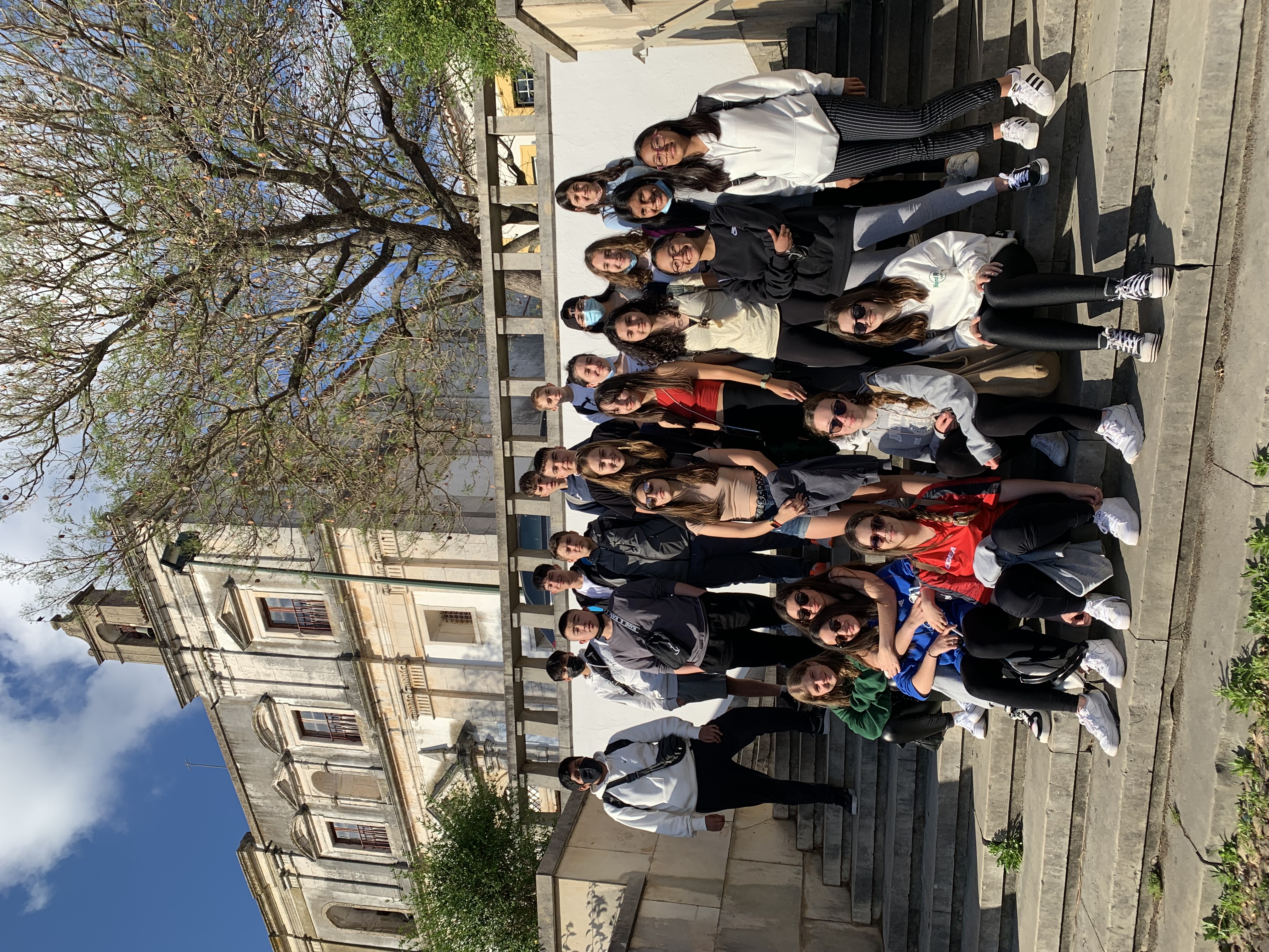 Los aguerridos viajeros de 4º de ESO comenzaron el viaje el domingo, 15 mayo. Tras encomendarse a la Santina, pusieron rumbo a Portugal, vía Castilla. Después de una breve parada, llegaron a la ciudad amurallada de Guarda y, tras la foto de rigor, comieron juntos. Los profesores comprobaron in situ la gastronomía portuguesa. Tras un paseo por el castillo y el casco antiguo, partieron hacia la ciudad medieval de Abrantes, a la que llegaron a media tarde.