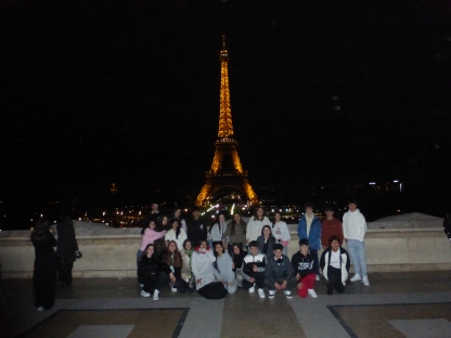 Los alumnos de 3º de ESO comenzaron ayer su viaje a Estrasburgo pasando la noche en París, tras un vuelo tranquilo. Al llegar a París les recibió Dimitrios, su conductor griego que es todo amabilidad. En lugar de llevarles directamente al hotel, les dejó un cuarto de hora en el Trocadero, para disfrutar de una espléndida imagen nocturna de la Torre Eiffel. Posteriormente les hizo un recorrido por el Arco del Triunfo y los Campos Elíseos, ganándose un merecido aplauso por parte del respetable.