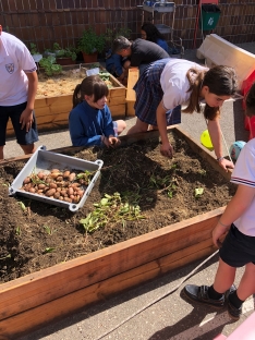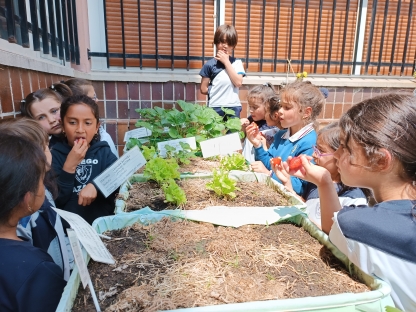 Actualmente, nuestro alumnado está disfrutando de la parte más gratificante del trabajo realizado dentro del huerto: la cosecha. Esta es el fin de la etapa del cultivo y el inicio de la preparación para el consumo, realizando la separación de la planta madre de la porción vegetal de interés comercial, que pueden ser frutos (como las fresas), bulbos (como las cebollas, las cebolletas o los ajos), tubérculos (como las patatas), inflorescencias (como el brócoli o la coliflor)...