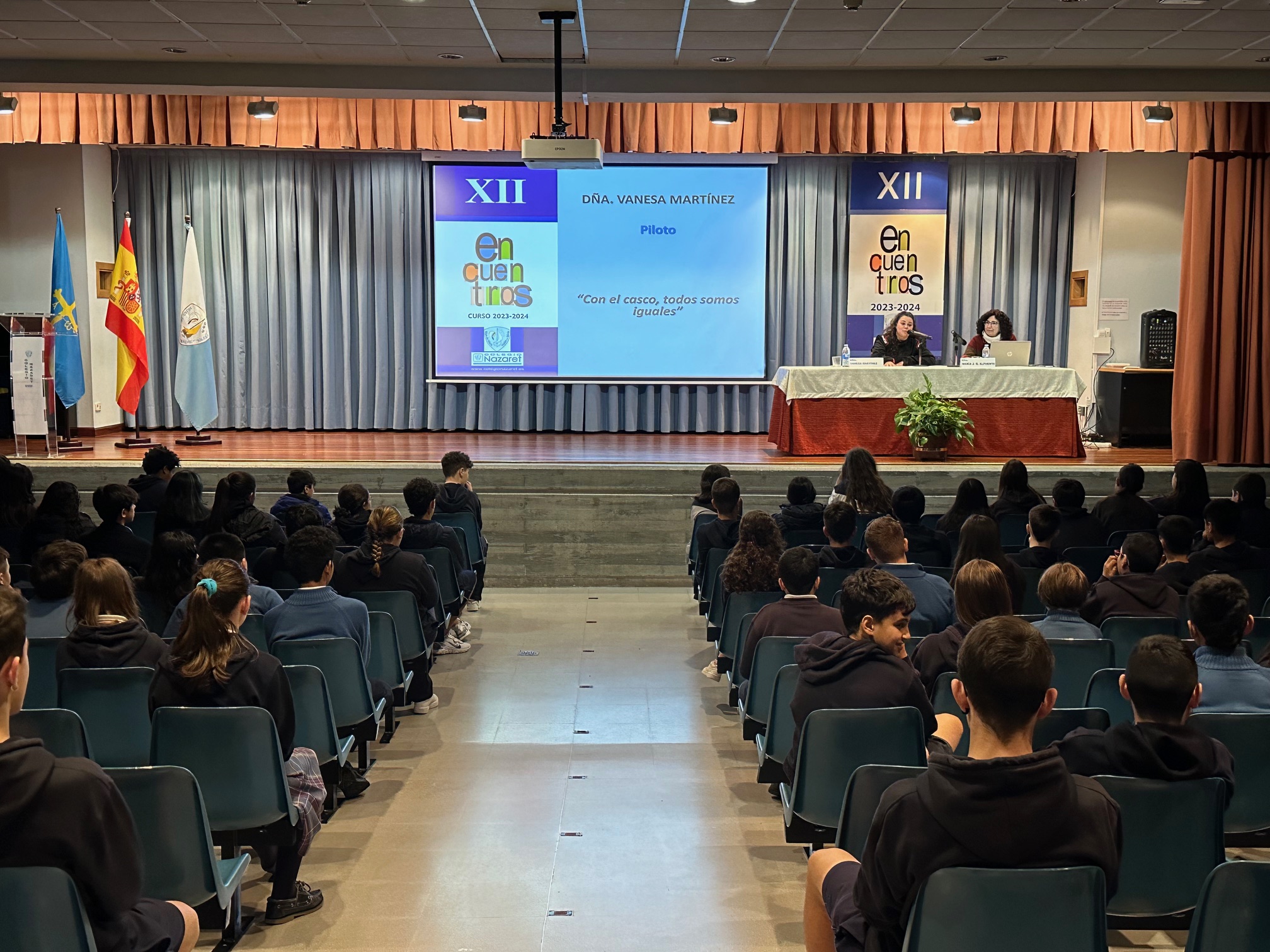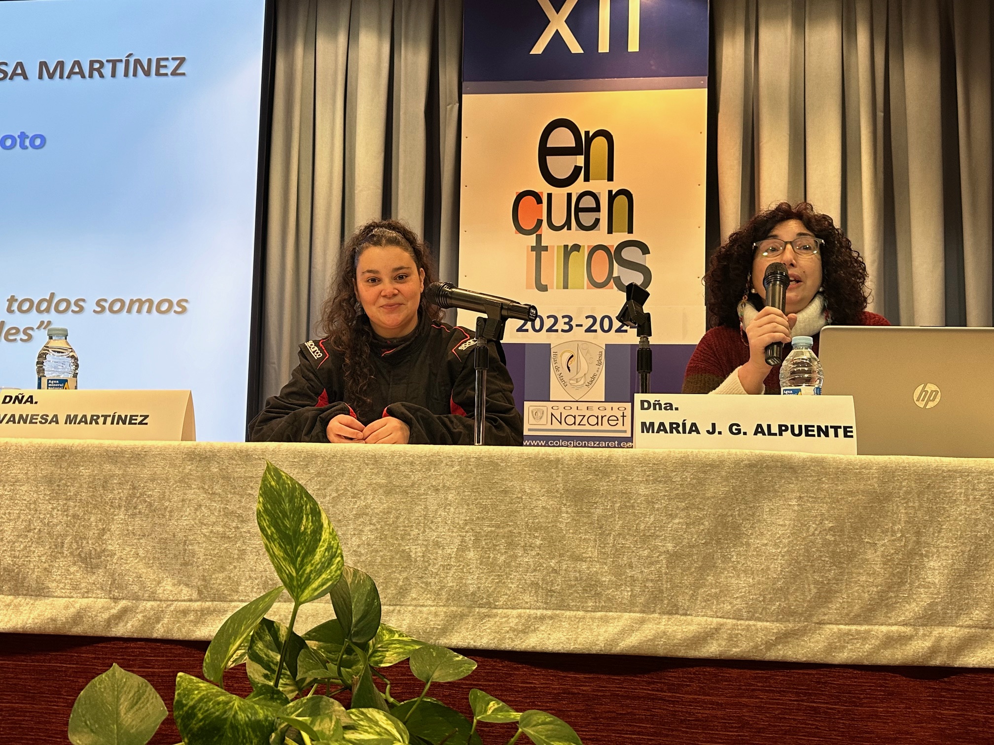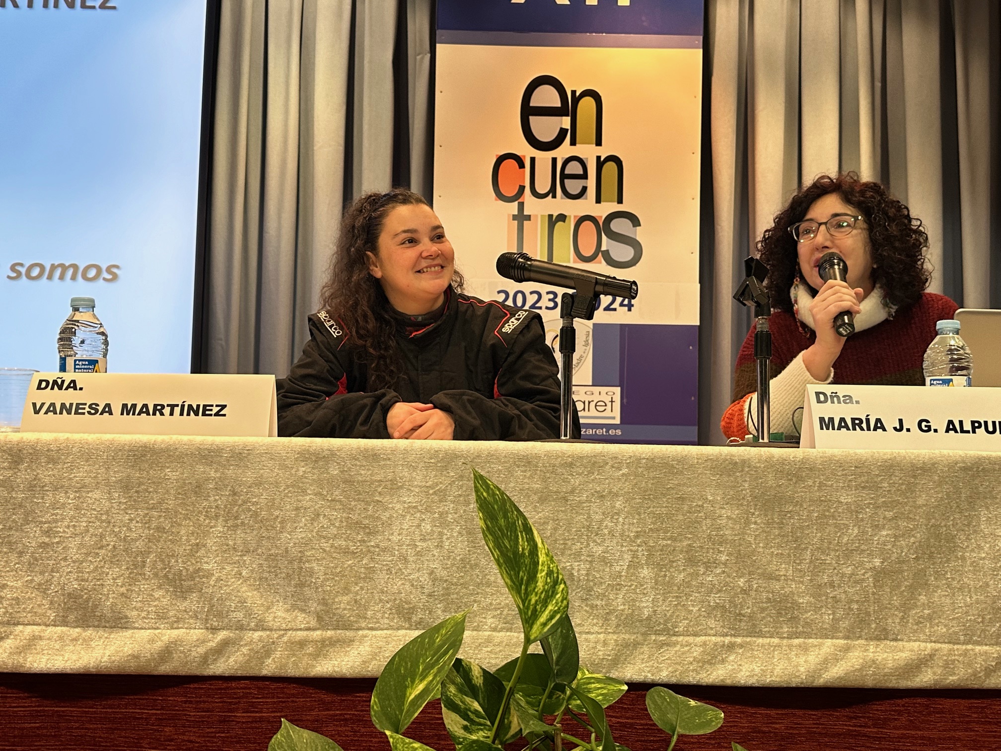 Hoy tuvimos la suerte de abrir los Encuentros con una exalumna, Vanesa Martínez Alonso, que vino a contarnos cómo está logrando cumplir su sueño de ser piloto de rally. Transmitió, además de su alegría -tal y como la recordábamos en el colegio-, la necesidad de luchar por lo que uno quiere, aunque el camino no sea fácil y se encuentren muchas piedras en él. Empezar no ha sido fácil, pero la perseverancia, el trabajo y el esfuerzo están ayudando a que cada año sea mejor que el anterior.