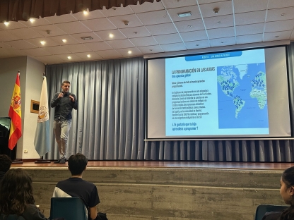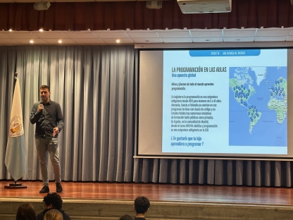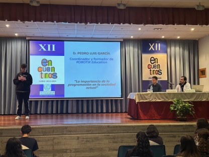 Pedro Luis García Álvarez, maestro en Educación Primaria, coordinador de ROBOTIX, formador y emprendedor, ha realizado a nuestro alumnado una charla muy elaborada y entretenida sobre este asunto de gran actualidad. Nos habló sobre cómo se van a desarrollar los trabajos del futuro, cómo afecta la sustitución de empleos por robots y máquinas (amplio debate) y sobre cómo puede ayudar dicha tecnología a la evolución de trabajos expuestos a riesgos o trabajos de desgaste físico que hacen peligrar la salud de las personas. Finalmente, se habló sobre cómo se pueden realizar los trabajos de mantenimiento o programación, la labor actual de la I+D+i, sobre ejemplos actuales del uso industrial de la impresión 3D, el uso de drones en ciertas profesiones o como herramienta necesaria, los videojuegos, la robótica y cómo todo lo anterior está evolucionando en la actualidad y que se espera en un futuro como sean. Sin duda. una charla muy interesante con una vista hacia el presente y futuro cercano, donde el alumnado ha podido preguntarle después sus dudas en temas como los lenguajes de la programación actual, la docencia y la programación conjuntas, y también sobre inteligencia artificial y su aplicación en el mundo real.