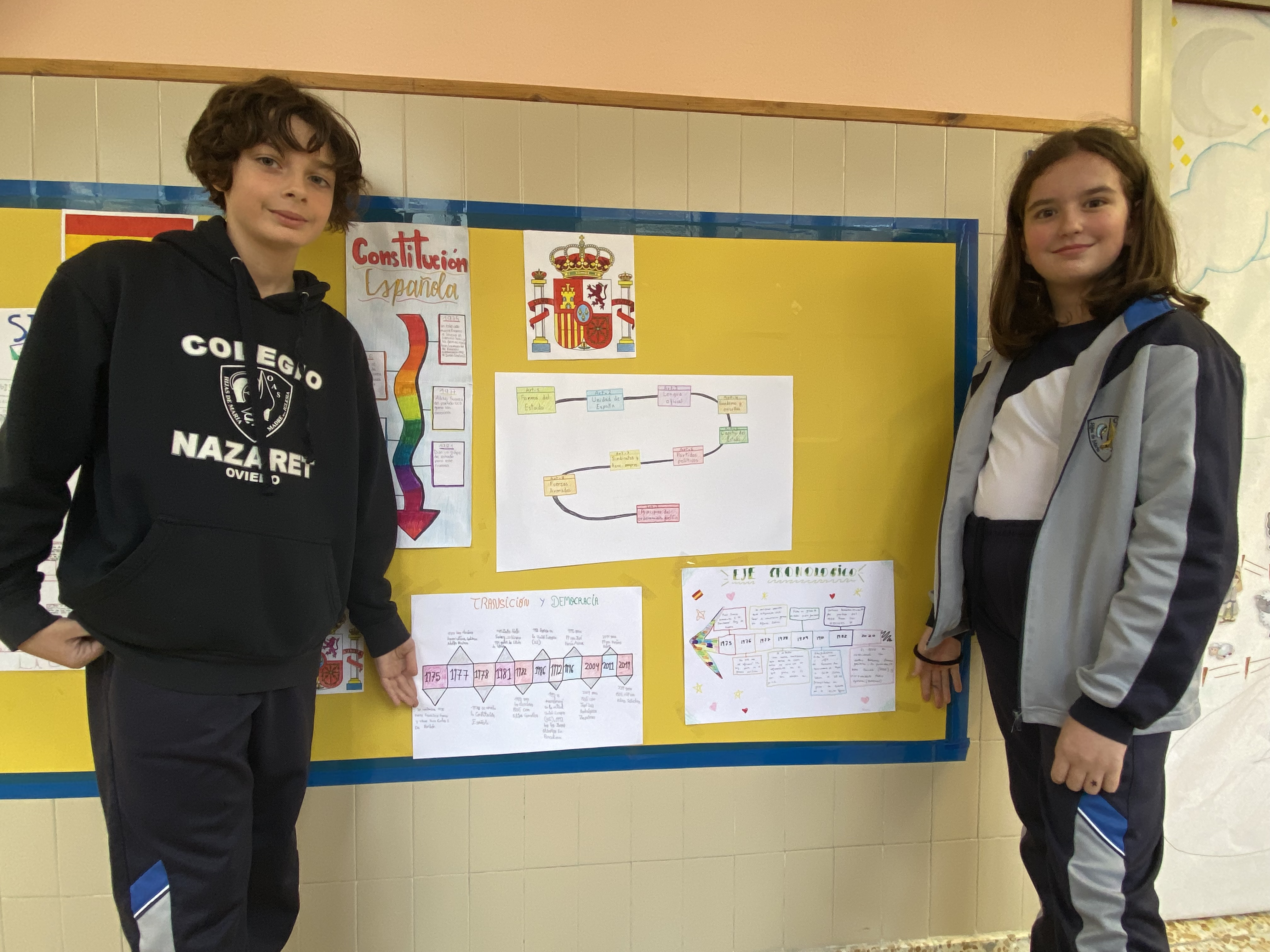El alumnado de 6º de E. Primaria ha estado trabajando diferentes actividades, de forma interdisciplinar, en relación a la Transición y Democracia en España. Han realizado varios ejes cronológicos y textos históricos señalando los acontecimientos más importantes hasta la actualidad. Al mismo tiempo, han recordado la importancia de los derechos humanos incluidos en nuestra Constitución, tratando temas como el derecho a la participación, la dignidad, la educación, la paz, etc. Para terminar, tratando el derecho a participar, están haciendo sugerencias al Ayuntamiento de Oviedo para mejorar nuestra ciudad.