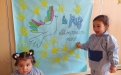 En la Guardería Nazaret también se celebra el Día de la Paz. Bajo el lema "La Paz está en nuestras manos", los niños y niñas han realizado un mural con sus manos y una manualidad de algodón con una palomita blanca para llevar la paz hasta sus casas.