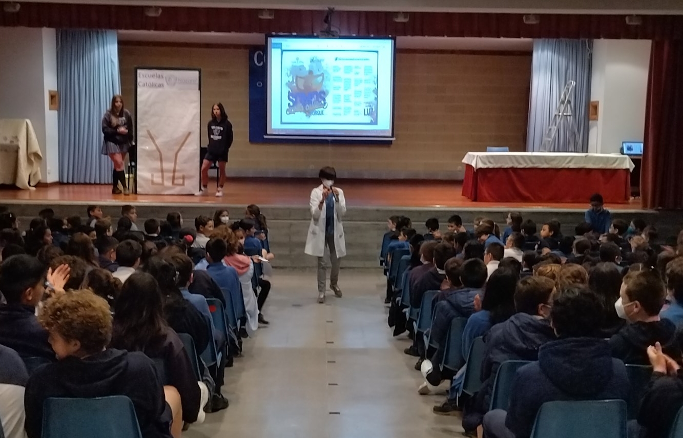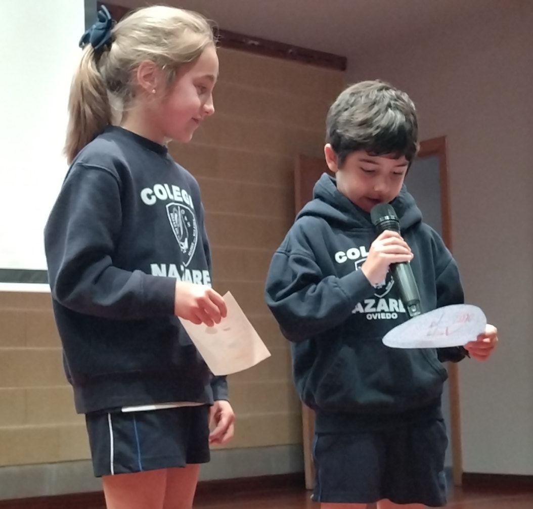 Para celebrar el Día de las Escuelas Católicas de Asturias, todos los alumnos de E. Primaria y E. Secundaria han participado hoy en un acto conjunto en el salón de actos donde sobresalieron los buenos propósitos para ser cada día mejores personas y hacer de nuestro mundo un lugar mejor.