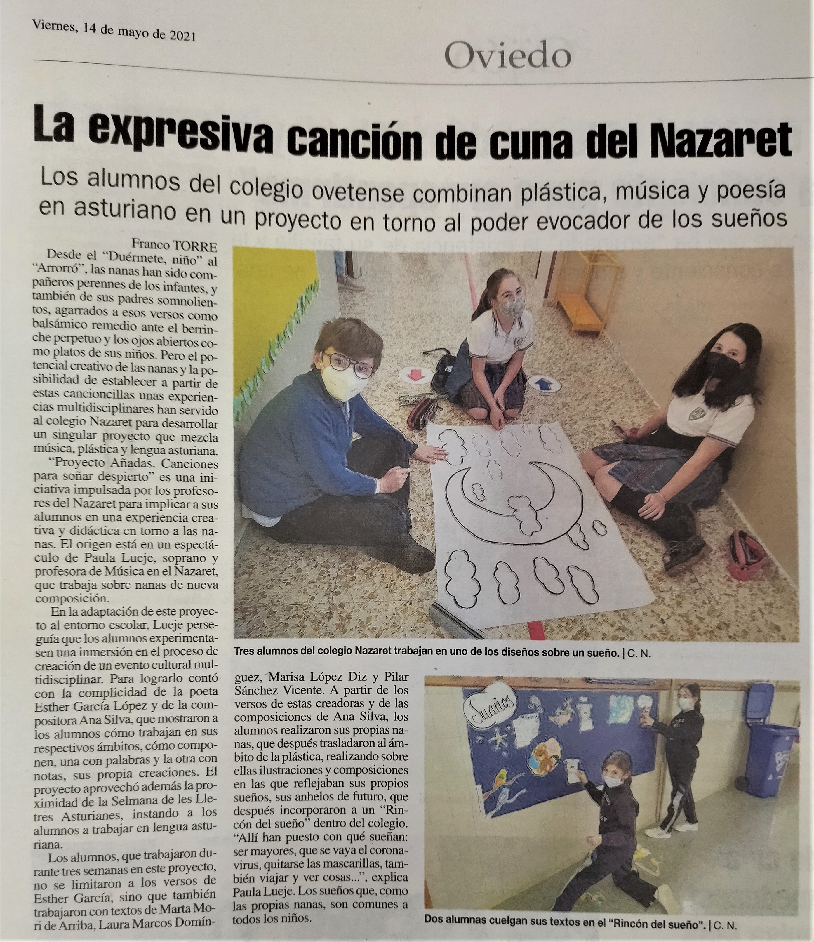 Los alumnos y alumnas de E. Primaria del cole han celebrado el Día de Les Lletres Asturianes de una manera diferente. Durante tres semanas han sido compositor@s, poetas, diseñador@s y cantantes con el objetivo de dar vida a sus propios sueños. De la mano de Adela, han querido compartir sus deseos con todos vosotros... Y este es el resultado, que todos tengamos nuestro pequeño rincón del sueño.