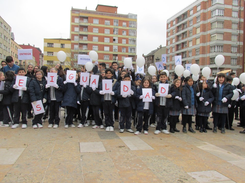 El mundo que nosotros queremos es un mundo en el que no existan ni el dolor ni la tristeza, un mundo sin guerras ni violencia, un mundo en el que todo sea posible, en el que podamos disfrutar de estar vivos, en el que no haya sufrimiento, un mundo en el que no gane el más fuerte, ni el más listo, ni el más guapo… Un mundo en el que todos seamos ganadores. Y estamos seguros de que ese mundo se puede lograr con la ayuda de todos, tanto de los más peques como de los más mayores. Por eso hoy salimos a la calle todos unidos, juntando nuestras manos, para conseguir juntos ese cambio.