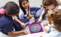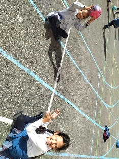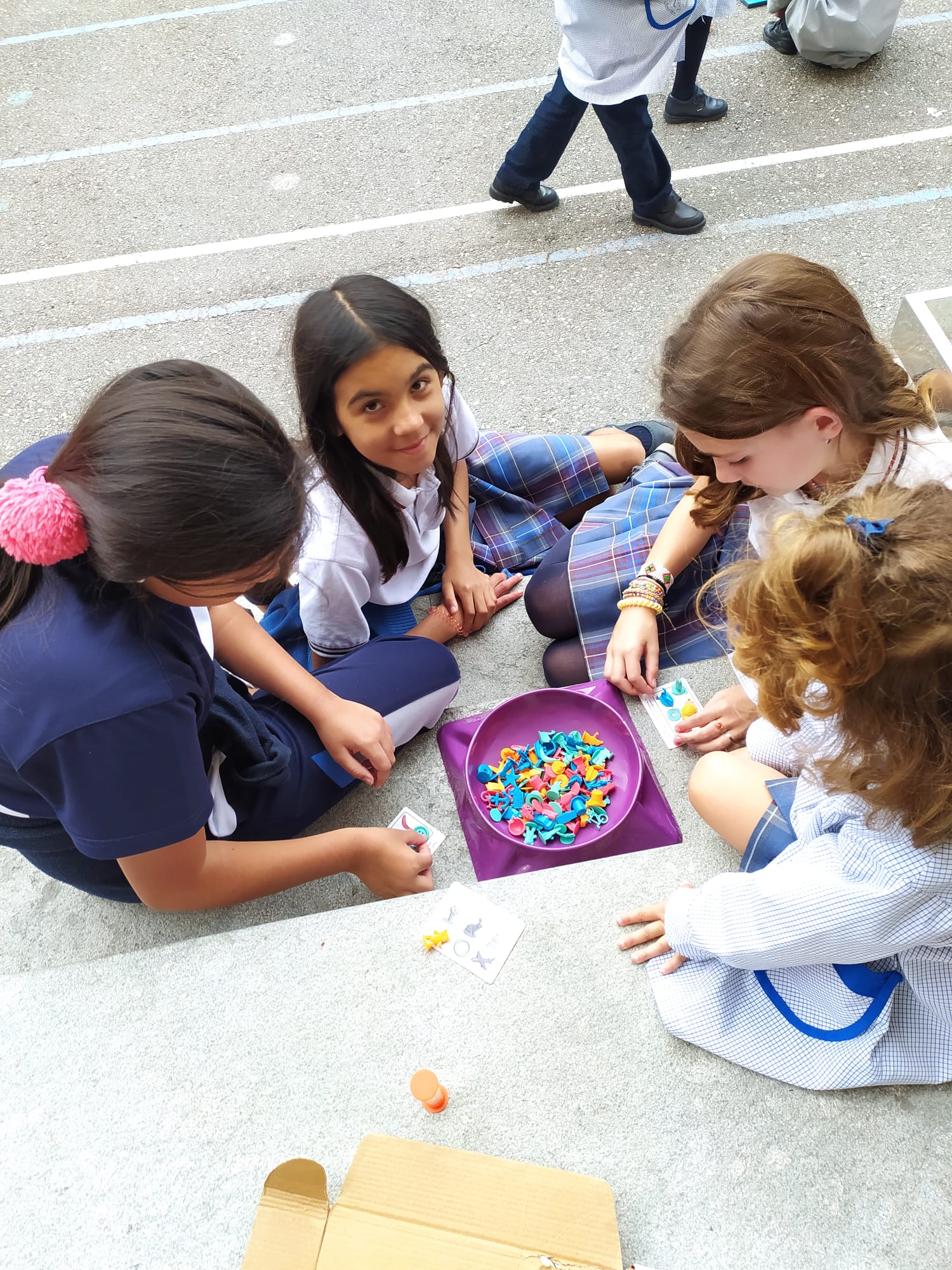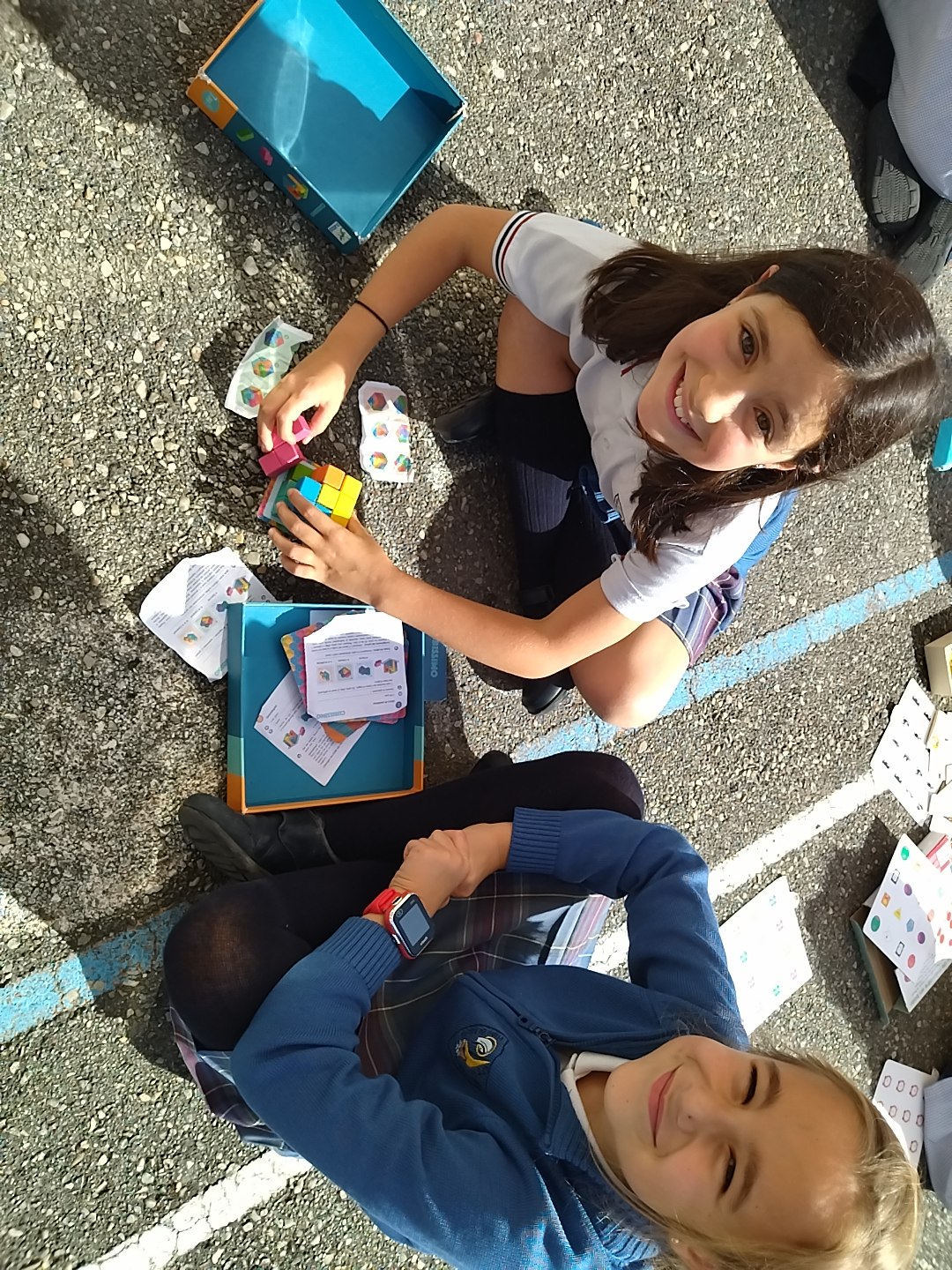 Los niños y niñas que se quedan a comer en el cole disfrutan del recreo compartiendo juegos que desarrollan las capacidades sociales, la creatividad, el razonamiento espacial, la lógica, los conceptos abstractos, la comunicación, la negociación, la atención… Un mundo aparte de los móviles y las tabletas, lejos de la vida digital y cerca de la vida real, como cuando se podía jugar en la calle, pero con la seguridad de estar en el cole. Solo hay que ver su concentración y sus sonrisas para entender que quizá este es el camino...