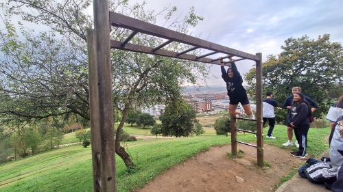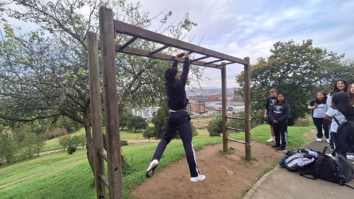 El martes, un grupo de alumnos de 3º de ESO acudieron a la Pista Finlandesa para realizar una sesión de Educación Física diferente. En primer lugar, realizaron una ruta-paseo por la pista, conociendo un nuevo entorno natural donde poder realizar actividad física. Además, vieron la zona de aparatos gimnásticos y aprendieron a utilizarlos disfrutando de una pequeña sesión de gimnasia con máquinas. Finalmente, realizaron juegos deportivos en el medio natural en una bonita mañana de otoño.