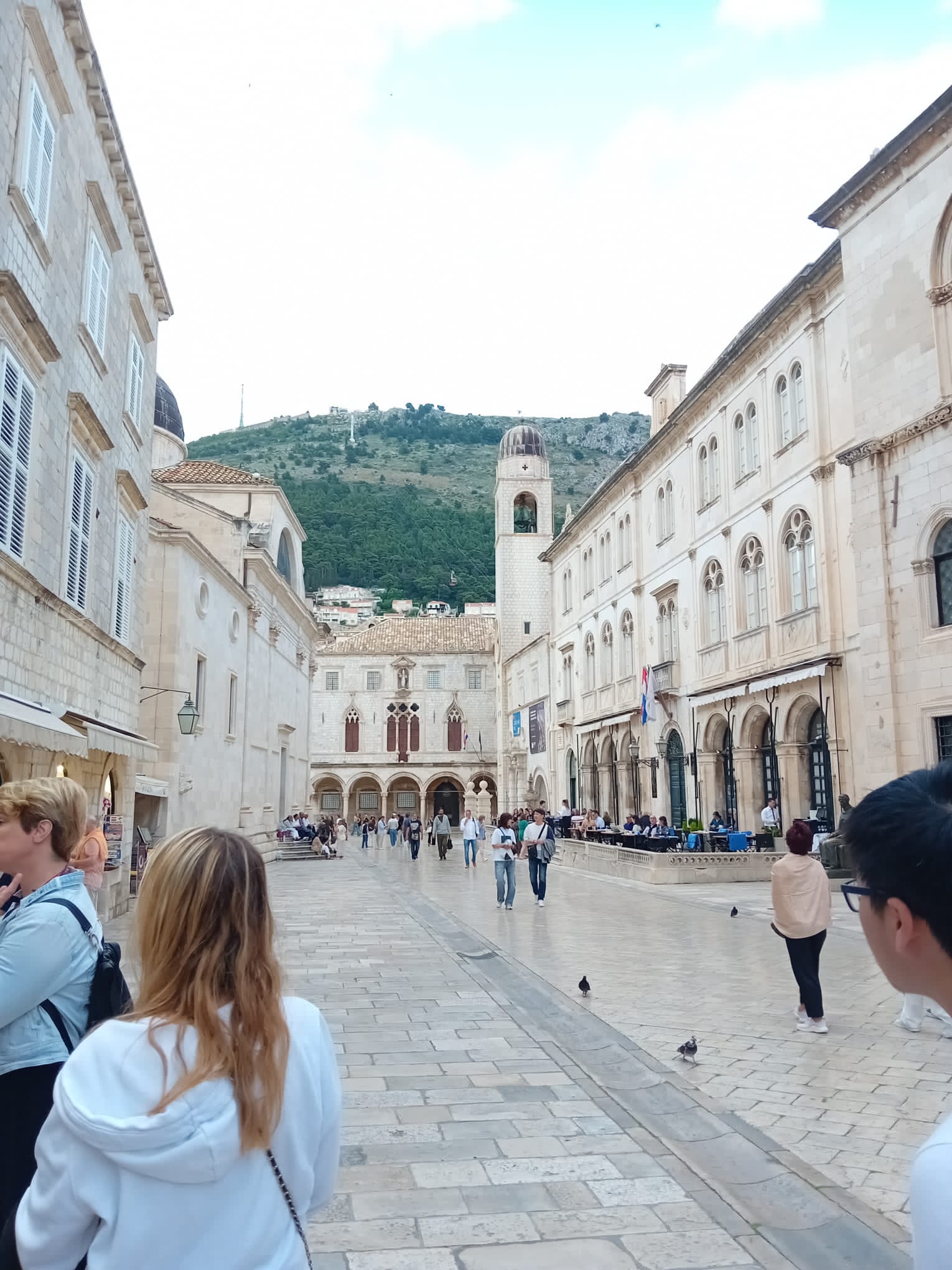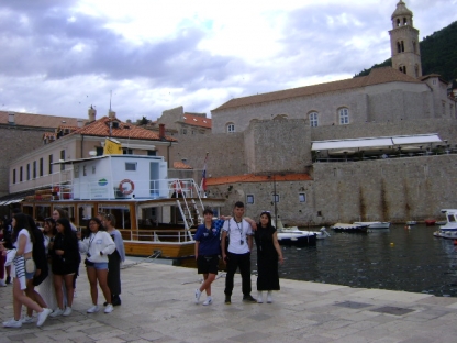 Después de comer, continuaron la ruta hasta Dubrovnik, la perla del Adriático. Una vez llegados al hostal, se encaminaron con la guía a la ciudad antigua, también Patrimonio de la Humanidad. Dubrovnik, es un recinto amurallado con calles muy ordenadas y casas de caliza blanca, un pintoresco puerto, todo muy bonito. La guía les llevó por los lugares más interesantes y curiosos, que nunca habrían conocido sin ella. Después del pateo, tiempo libre para compras y cena. Finalmente volvieron al hostal, a un cuarto de hora caminando del centro histórico.