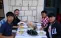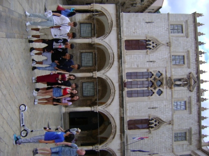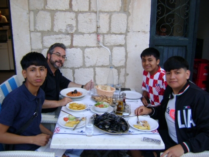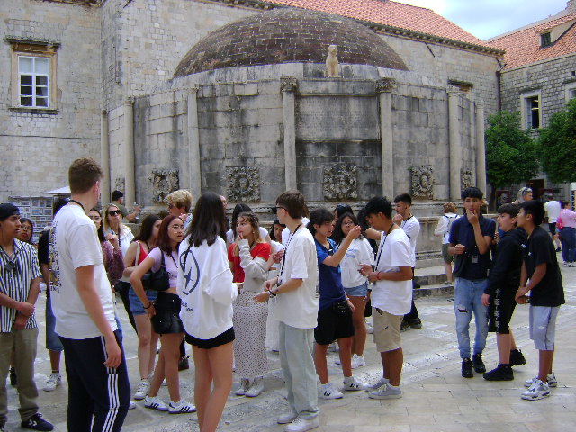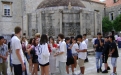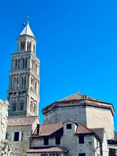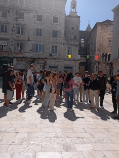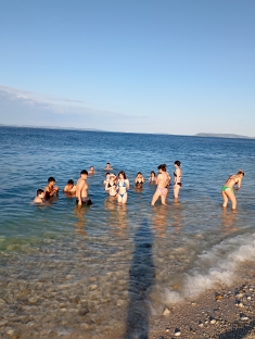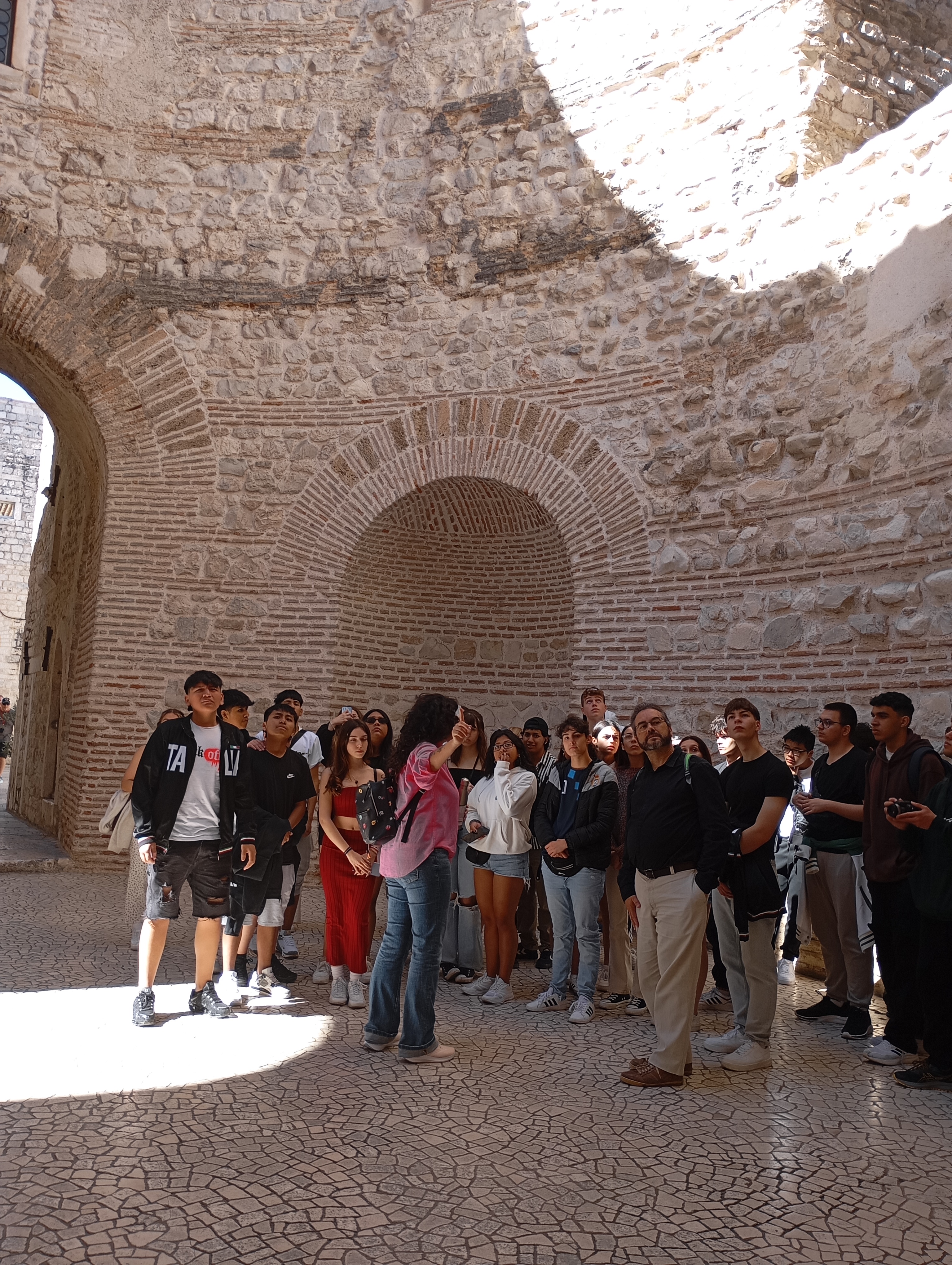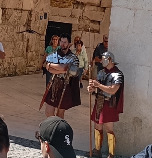 Ayer viernes, antes de que pusieran las calles, exactamente a la 6.50 horas, diecisiete valientes fueron a la playa anexa al hotel y se bañaron en el Adriático (dicen que el agua estaba fresquita...). Seguidamente marcharon a Split, capital de Dalmacia y ciudad Patrimonio de la Humanidad de la UNESCO. La guía les explicó que el casco antiguo está dentro de lo que era el gran palacio del emperador romano Diocleciano (S. III d C.). Recorrieron las calles internas, el peristilo, la Catedral y las bonitas plazas con cafeterías. Asistieron a varias curiosidades: unos hombres disfrazados de romanos se fotografiaban con los turistas por una propina; y también oyeron a cuatro hombres cantando Kapla, un canto a capela muy vivencial, típico Dálmata.