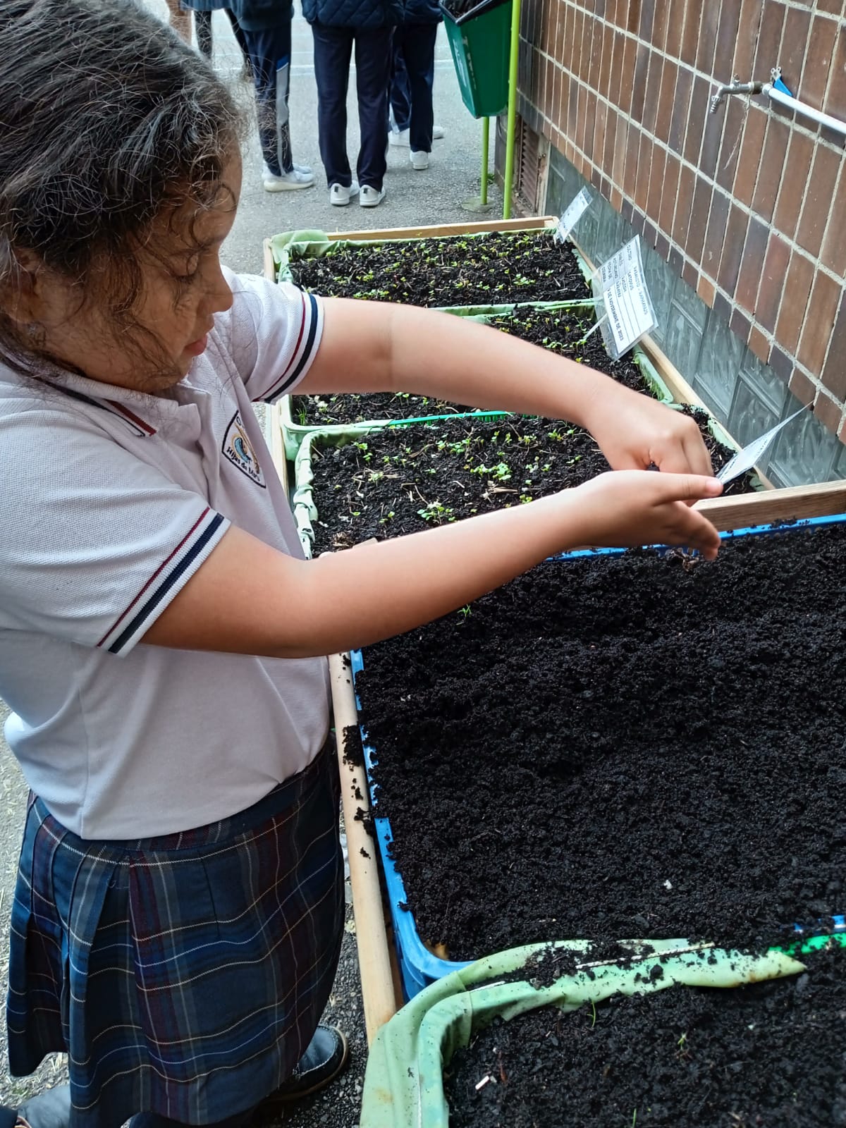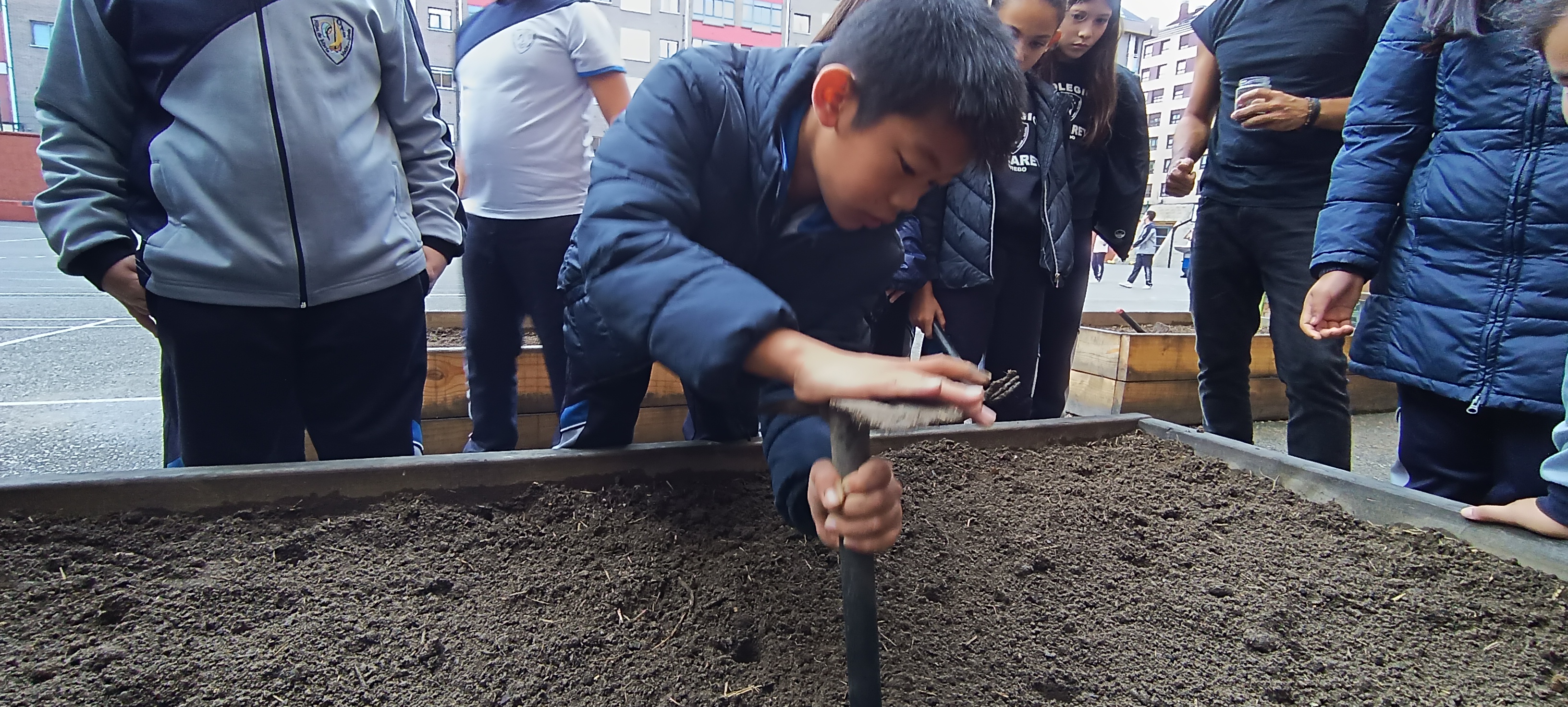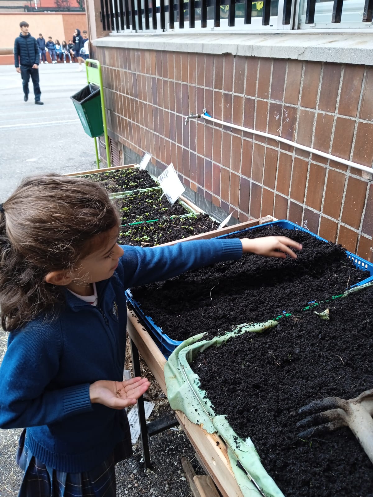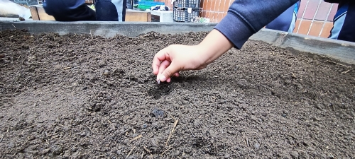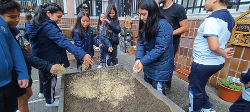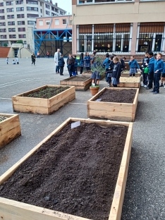 Además, el alumnado aprovechó para realizar labores de mantenimiento general en el huerto, como por ejemplo: eliminación de malas hierbas, arado de bancales vacíos y riego. También han observado el crecimiento de otros cultivos disponibles en el huerto, como los rabanitos sembrados la semana pasada que ya han germinado.