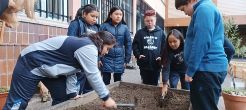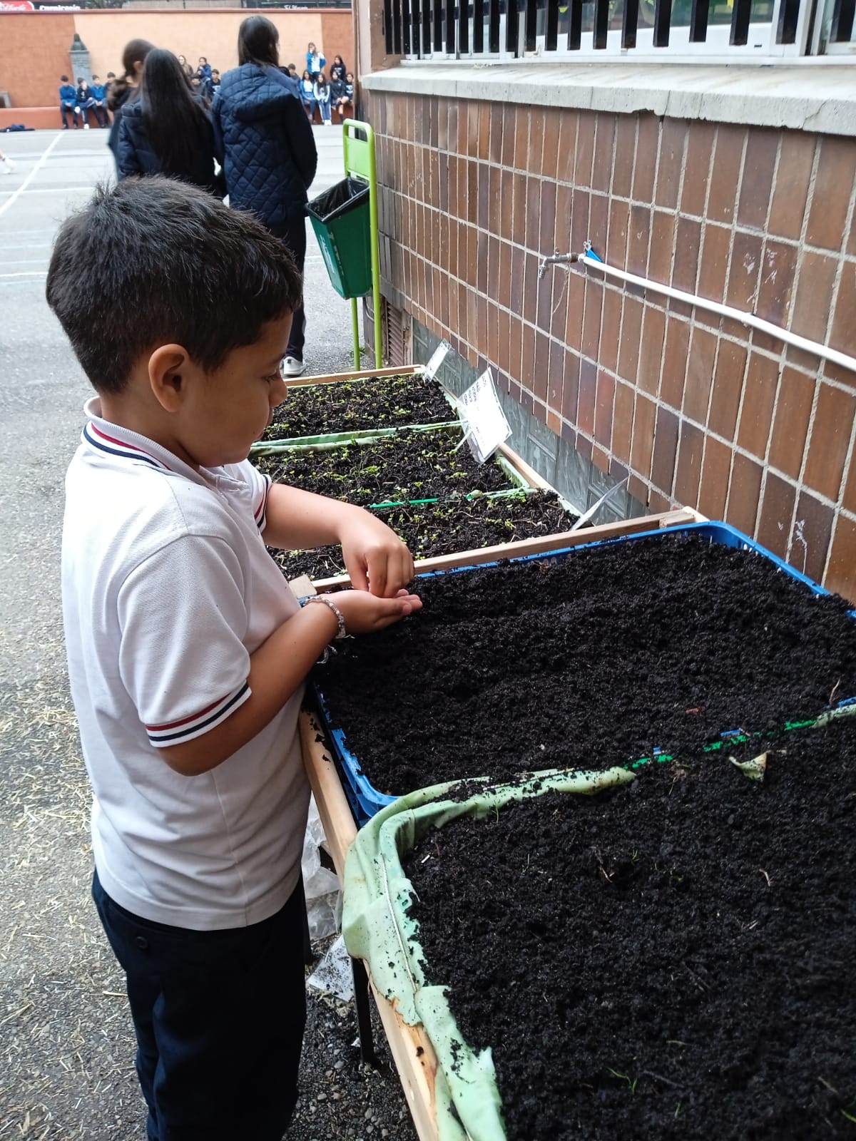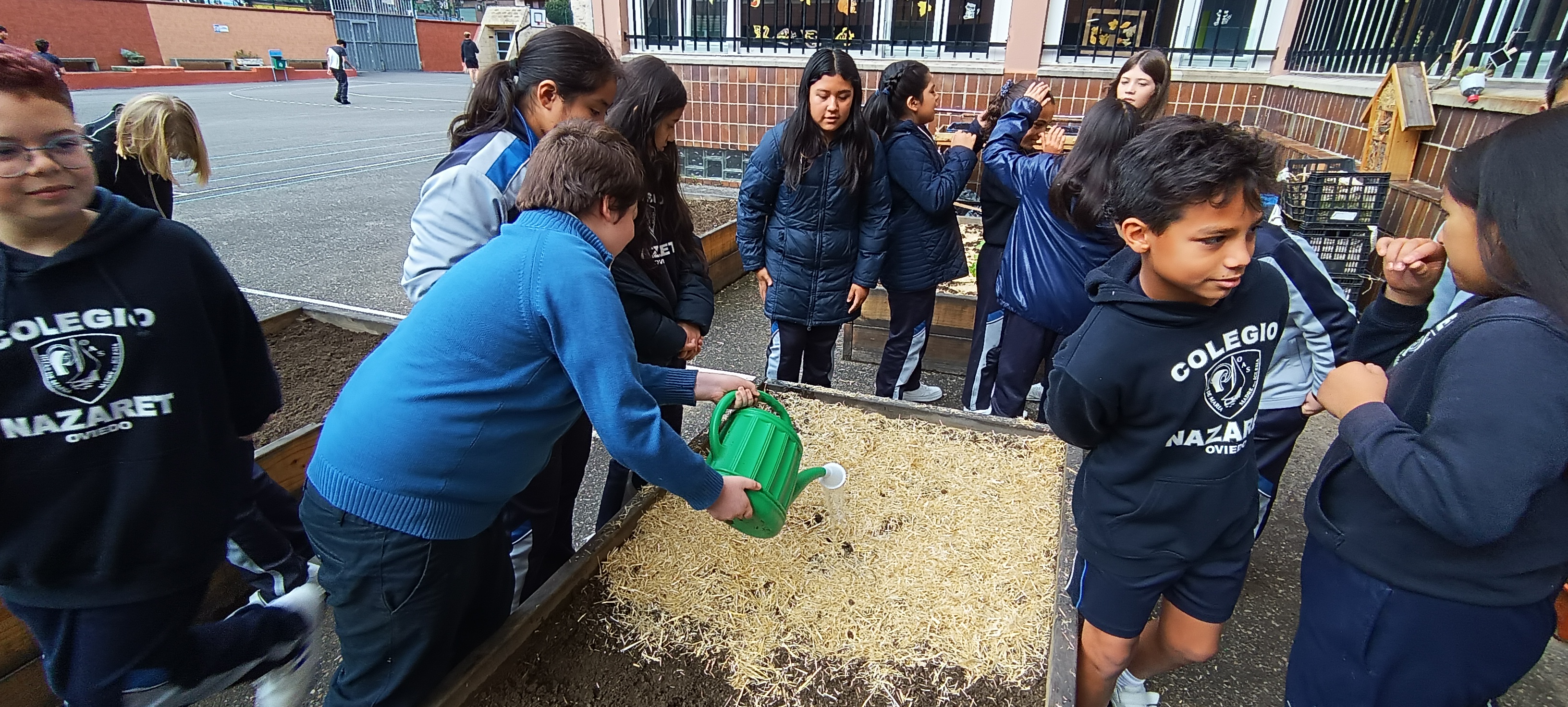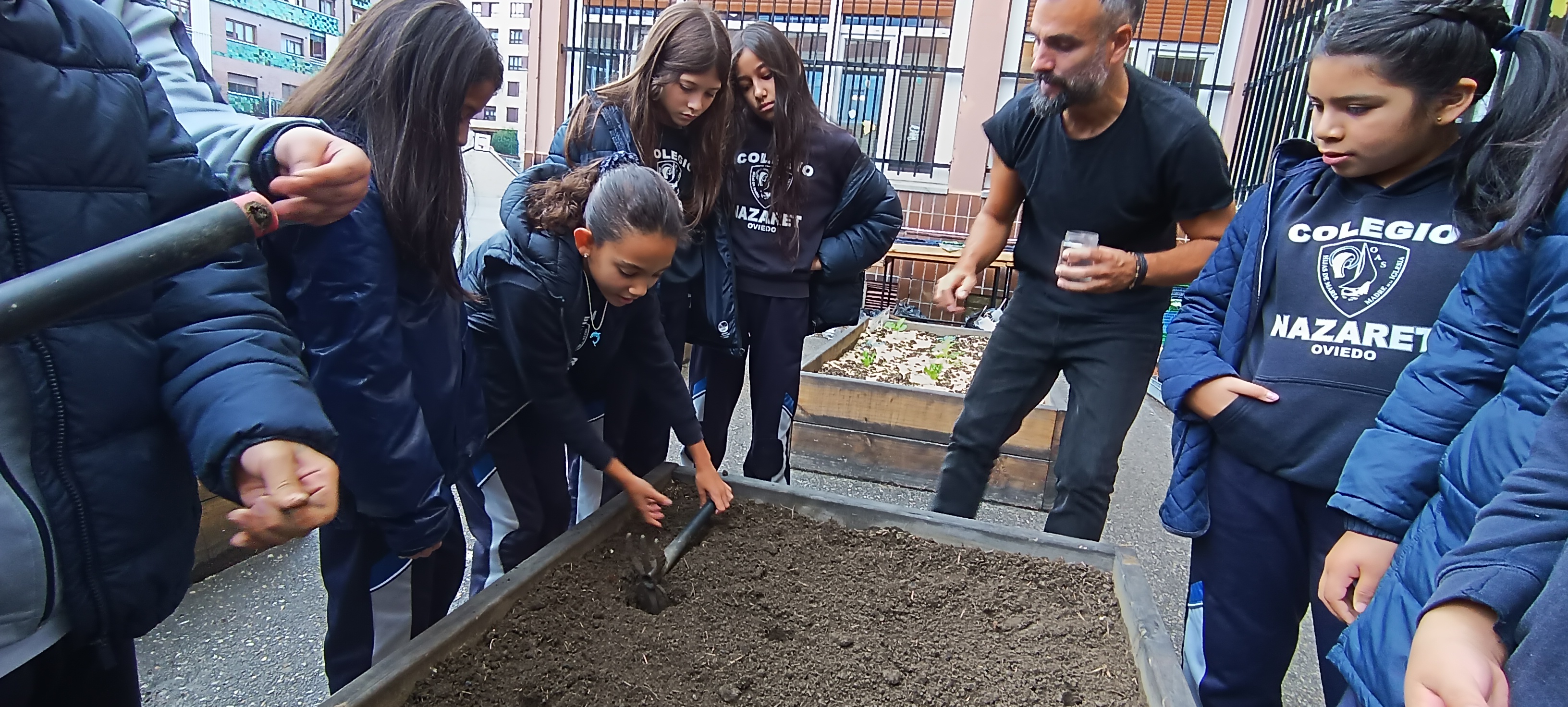 Además, el alumnado aprovechó para realizar labores de mantenimiento general en el huerto, como por ejemplo: eliminación de malas hierbas, arado de bancales vacíos y riego. También han observado el crecimiento de otros cultivos disponibles en el huerto, como los rabanitos sembrados la semana pasada que ya han germinado.