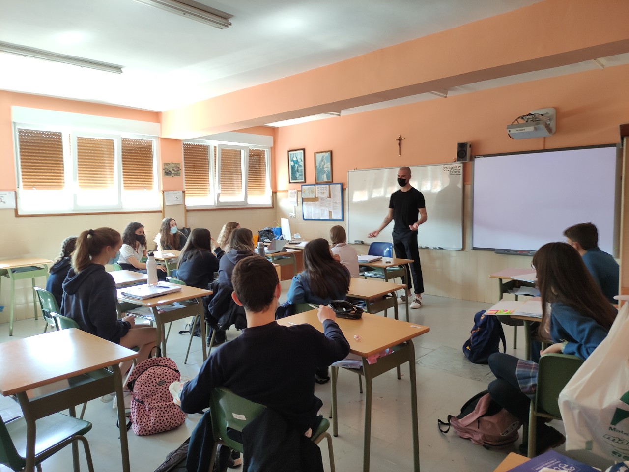 Los alumnos de 4ºA de ESO realizaron una entrevista en francés a Nicolas, de origen belga, y Claudia, antigua alumna de nuestro colegio. Ambos les contaron sus interesantes experiencias vividas en otros países, Claudia en Bélgica y Nicolas en España, además de aconsejarles salir a conocer otras culturas. Les agradecemos enormemente su visita y les deseamos mucha suerte en sus futuros proyectos. ¡Ha sido un placer contar con ellos!