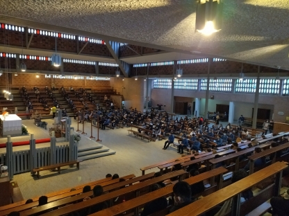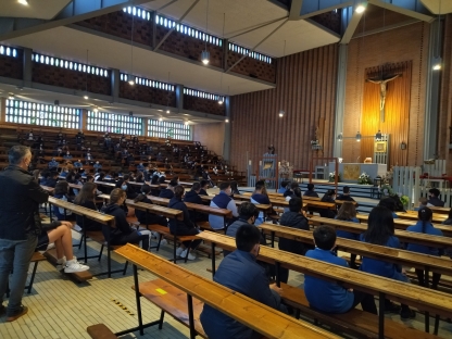 Con motivo del inicio del curso escolar 2021-2022, todos los alumnos desde 3º de E. Primaria hasta 4º de ESO, acompañados por sus profesores, celebramos una Eucaristía de bienvenida en la parroquia de San Pablo. Con la emoción de poder encontrarnos juntos otra vez en la iglesia, siempre respetando las medidas de seguridad, emprendemos un nuevo camino bajo el lema “¡AcompañándoTe!”.