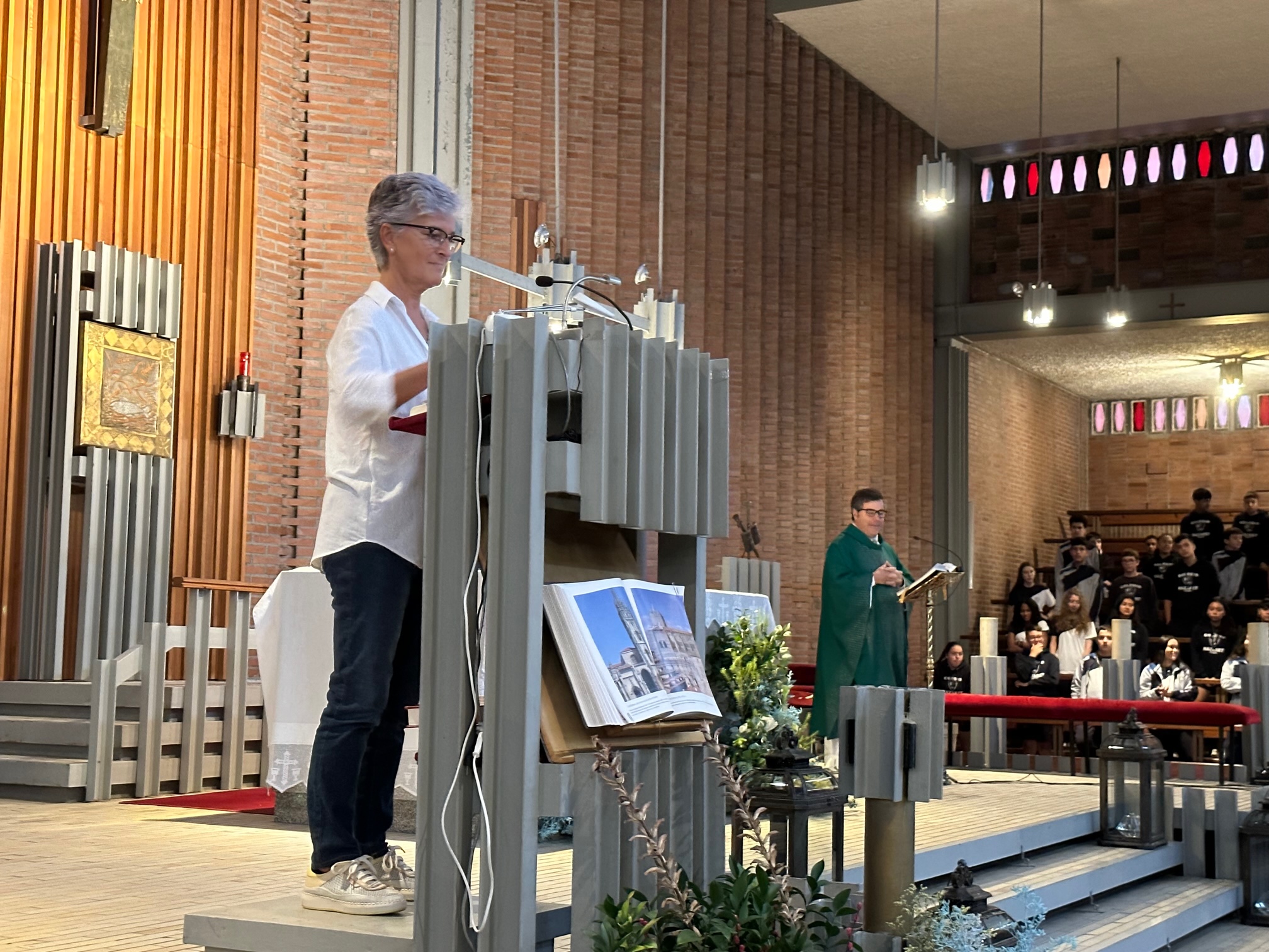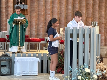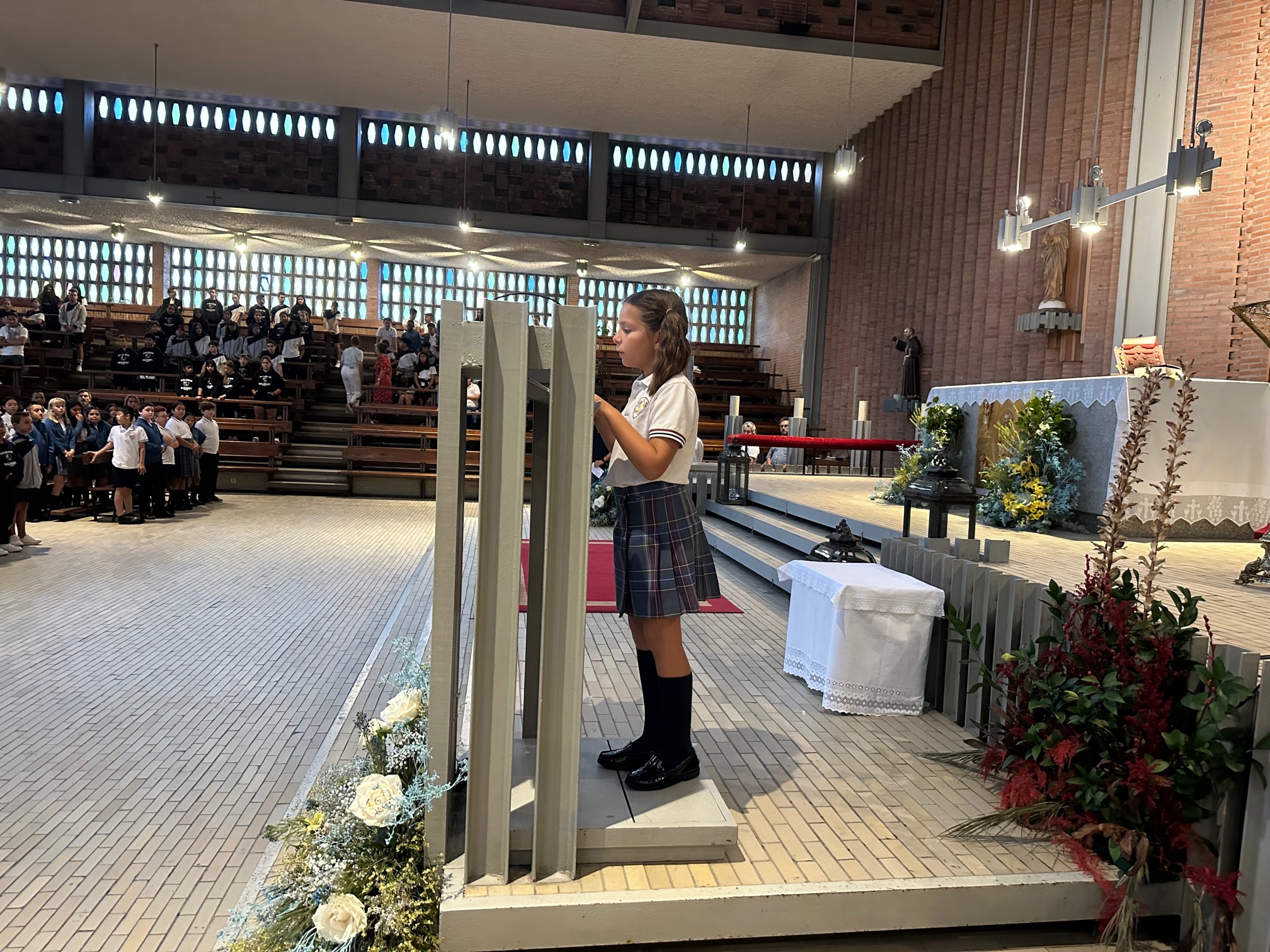 Para comenzar el curso escolar 2023-2024, todos los alumnos desde 3º de E. Primaria hasta 4º de ESO, acompañados por sus profesores y algunas familias, celebramos una Eucaristía de bienvenida en la parroquia de San Pablo, bajo el lema que siempre acompañó los actos generosos de Madre Matilde: "¡AdelanTe, siempre adelante!"