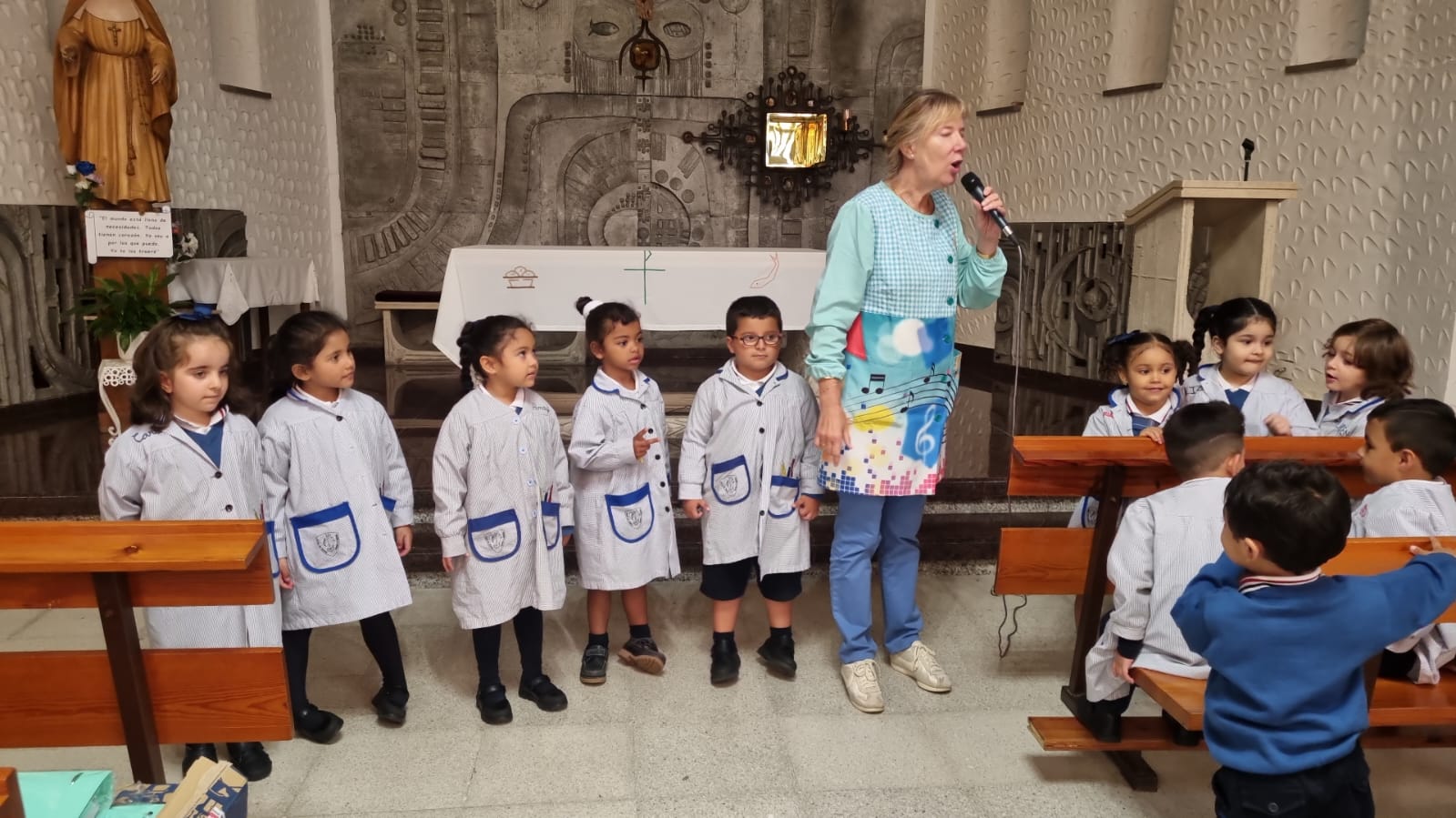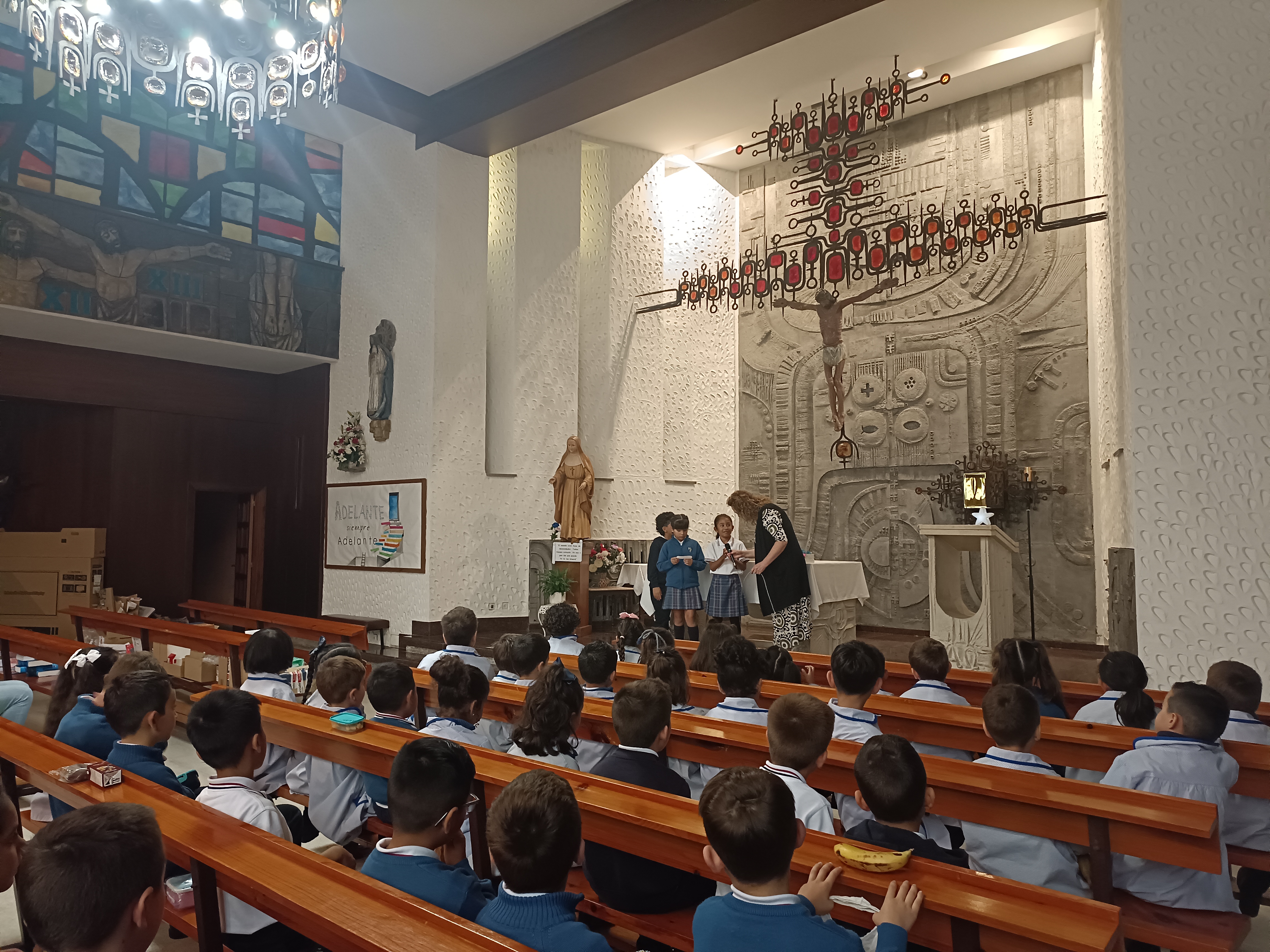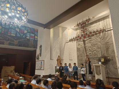 El resto de alumnos, de E. Infantil y primer ciclo de E. Primaria, se unieron a los mayores en una celebración más pequeña en la capilla del cole. Así, un año más, nos ponemos manos a la obra siguiendo las huellas de Madre Matilde para imitar su vida de entrega a los demás en nuestro proyecto común de enseñar y aprender, de crecer y creer en esperanza, de trabajar para ser mejores personas en un mundo mejor, apoyándonos siempre en los brazos de Jesús, nuestro Maestro.