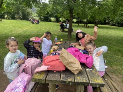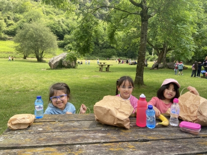 Los alumnos de 1º y 2º de E.P. aprovecharon la excursión final de curso para visitar el Valle del Oso, en Proaza. Unos monitores muy agradables los recibieron con mucho entusiasmo y los llevaron al cercado de los osos. Después, visitaron la Casa del Oso y les explicaron cosas muy interesantes acerca del  hábitat, alimentación y costumbres de los osos pardos. Para finalizar la jornada, disfrutaron de un picnic y un rato de convivencia en el área recreativa de Buyera.