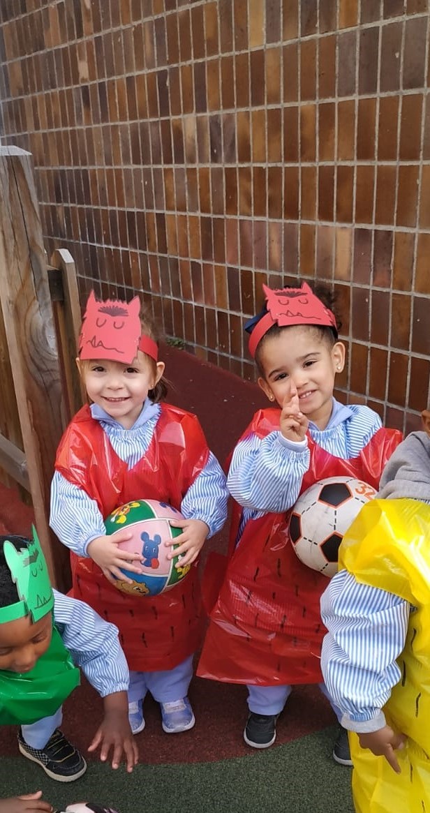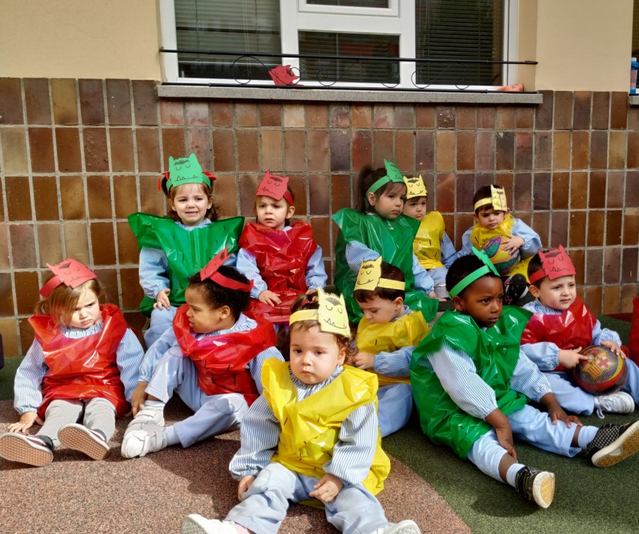 Los niños y niñas de la Guardería Nazaret también tuvieron su fiesta de Carnaval particular. Terminaron el día en el patio, donde jugaron todos juntos con las pelotas, al corro de la patata..... disfrazados del monstruo de colores, en el que cada grupo de color representa una emoción: verde es la calma, amarillo la alegría y el rojo el enfado.