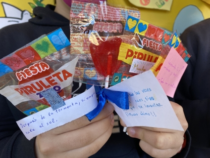 Como ya sabéis, hemos llevado a cabo una iniciativa solidaria en colaboración con la Cocina Económica para el proyecto: ALIMENTA TU VIDA. Nuestra colaboración consistió en la recogida de piruletas acompañadas de mensajes de ánimo redactados por alumnos, profesores y familias, que serán entregadas a los usuarios de esa institución dedicada a repartir alimentos a precio asequible a las personas que, en estos momentos, están pasándolo mal en Oviedo. Nuestro corazón está con ellos.¡Conseguimos recoger más de 600 piruletas!