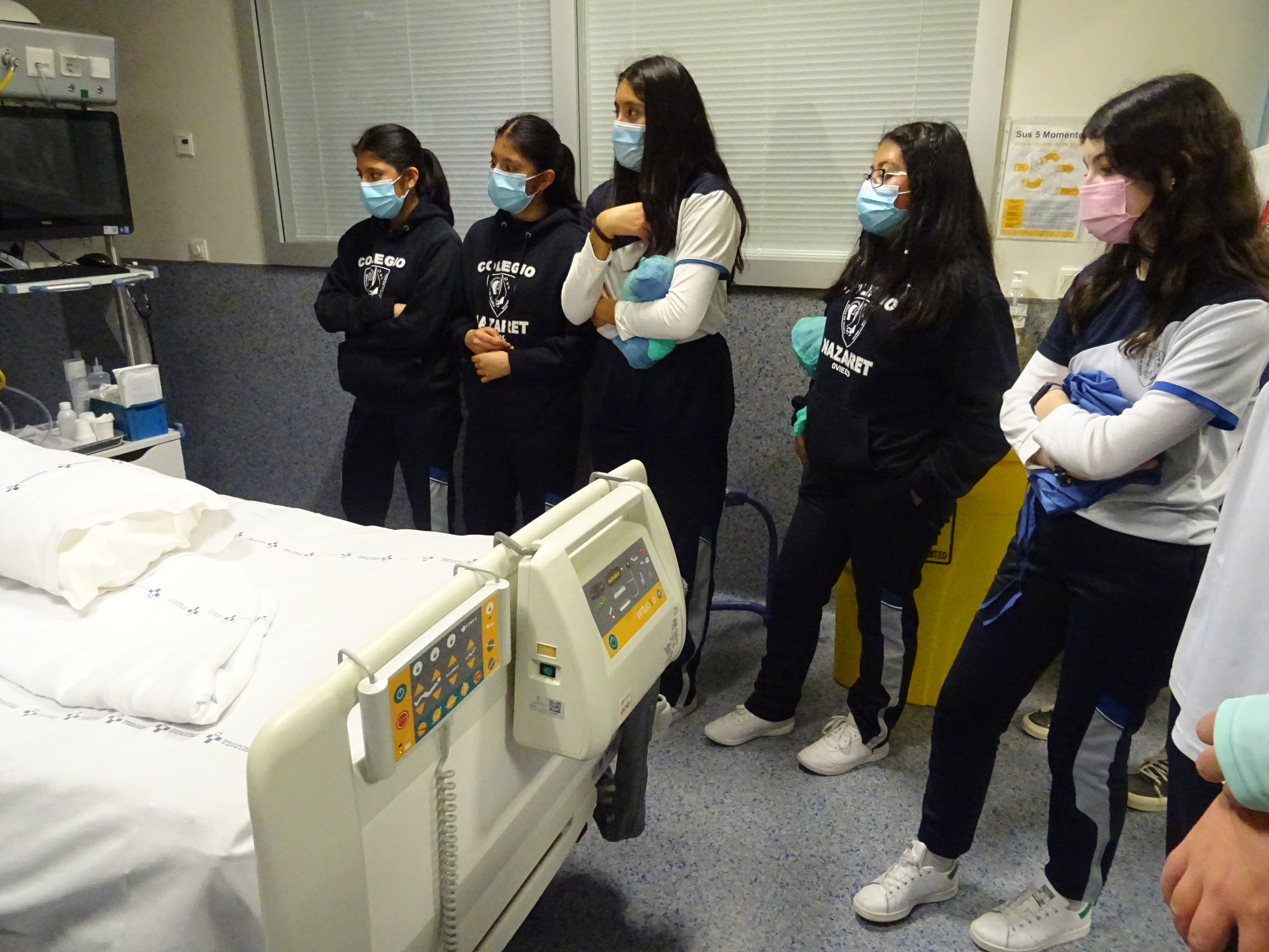 Los alumnos de Biología de 4º ESO, visitaron el HUCa el pasado jueves, 26 de enero, acompañados por el profesor Marcial Serrano. Un enfermero se encargó de explicar todo lo referente a las áreas hospitalarias visitadas: un quirófano, la zona de neonatos con un paritorio y área de posparto (donde coincidieron con la médico Eva Fernández Morán, antigua alumna del Nazaret), la unidad de cuidados intensivos (UCI) cardiológica, el área de cirugía infantil y su escuela, el laboratorio de bioquímica, y el área de rehabilitación con su piscina, en la que los fisioterapeutas explicaron los diferentes ejercicios físicos que practican con los enfermos. Posteriormente entraron en una UVI móvil y, por último, fueron a radiología, donde les explicaron los rayos X y el escáner/TAC.